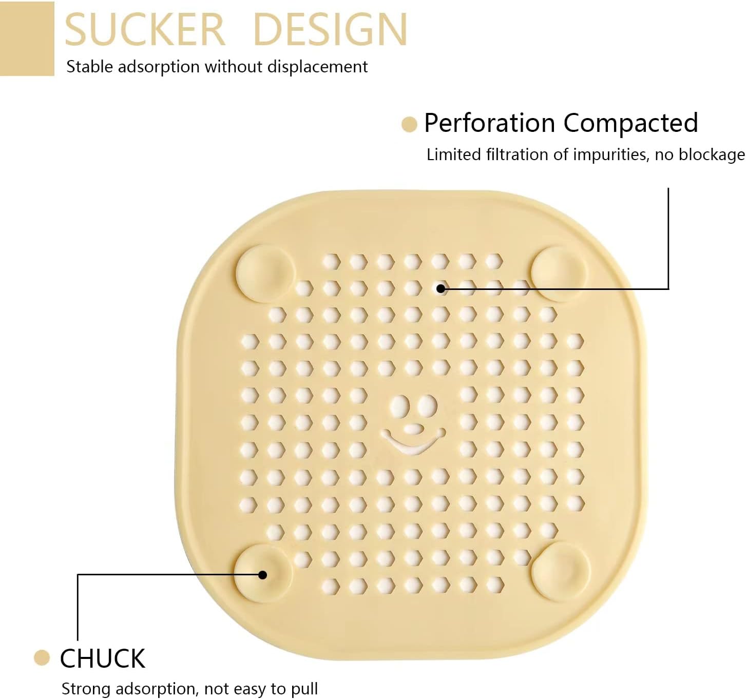 - Easy to Install and Use: When installing, put it on the drain, press the suction cups on the four sides, and pull it off from the suction cups when removing it.