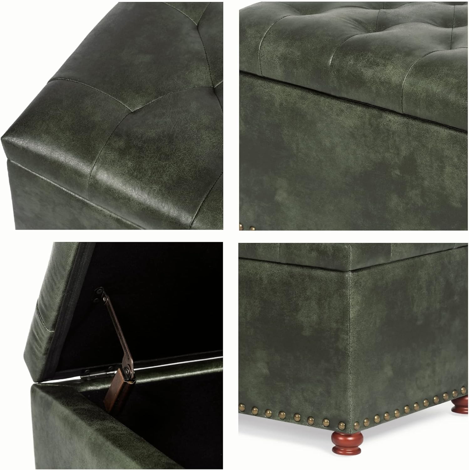 24'' Leather Ottoman with Storage Rectangle Foot Rest Ottomans Stool for Living Room(Green,Leather Texture)