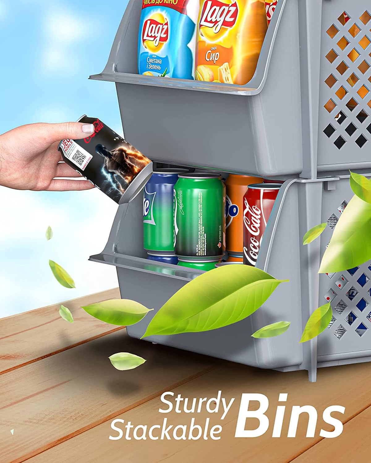 - KEEPS ESSENTIALS ORGANIZED AND VISIBLE - Stackable bins hold foods, toys, utensils, and toiletries without bending off. Set of 5, Each bin size: 14.5” x 11.5” x 7”.