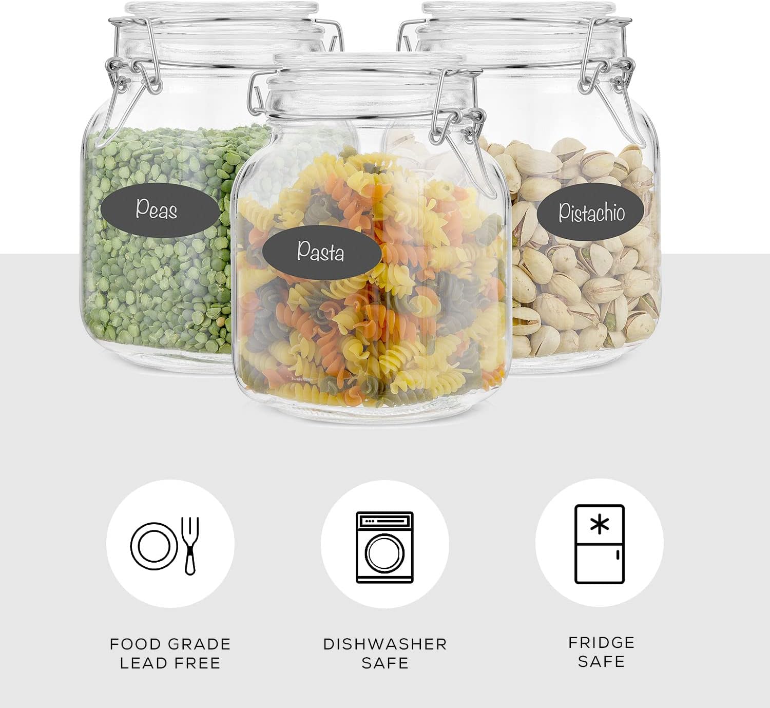 - DOUBLE THE AIRTIGHT SEAL! It’s annoying isn’t it, when your favorite air tight sealable containers somehow lose their silicone seals, or warp beyond repair. So in this glass jar with clip lid set we also give you 3 extra seals! Now every hinged lid jar you own is a useful part of your kitchen organization!
