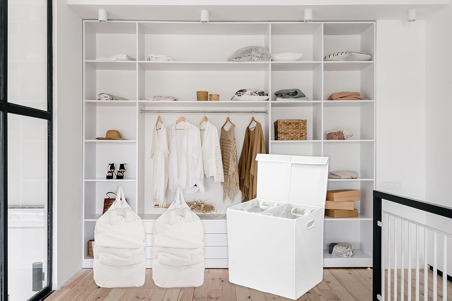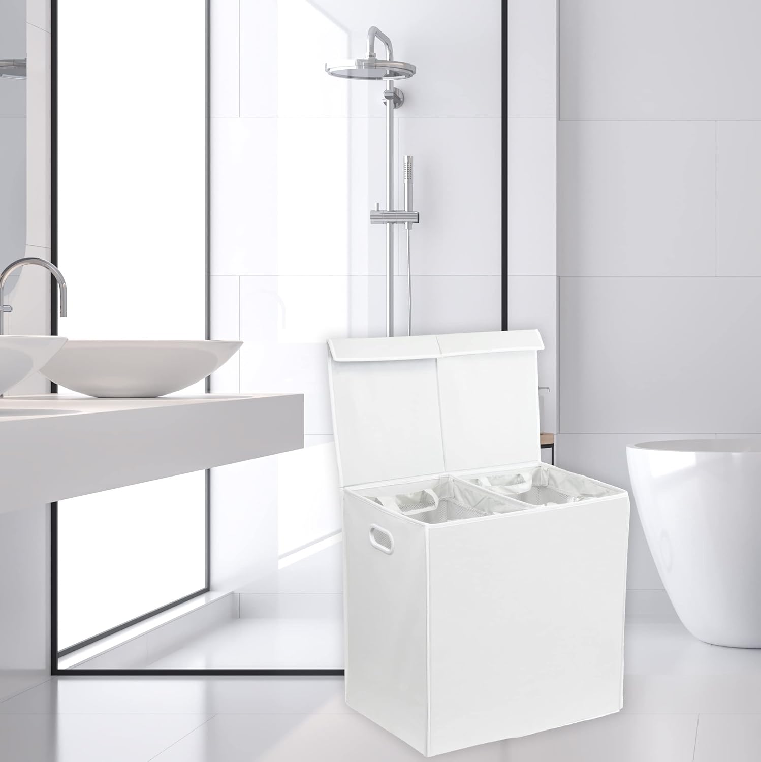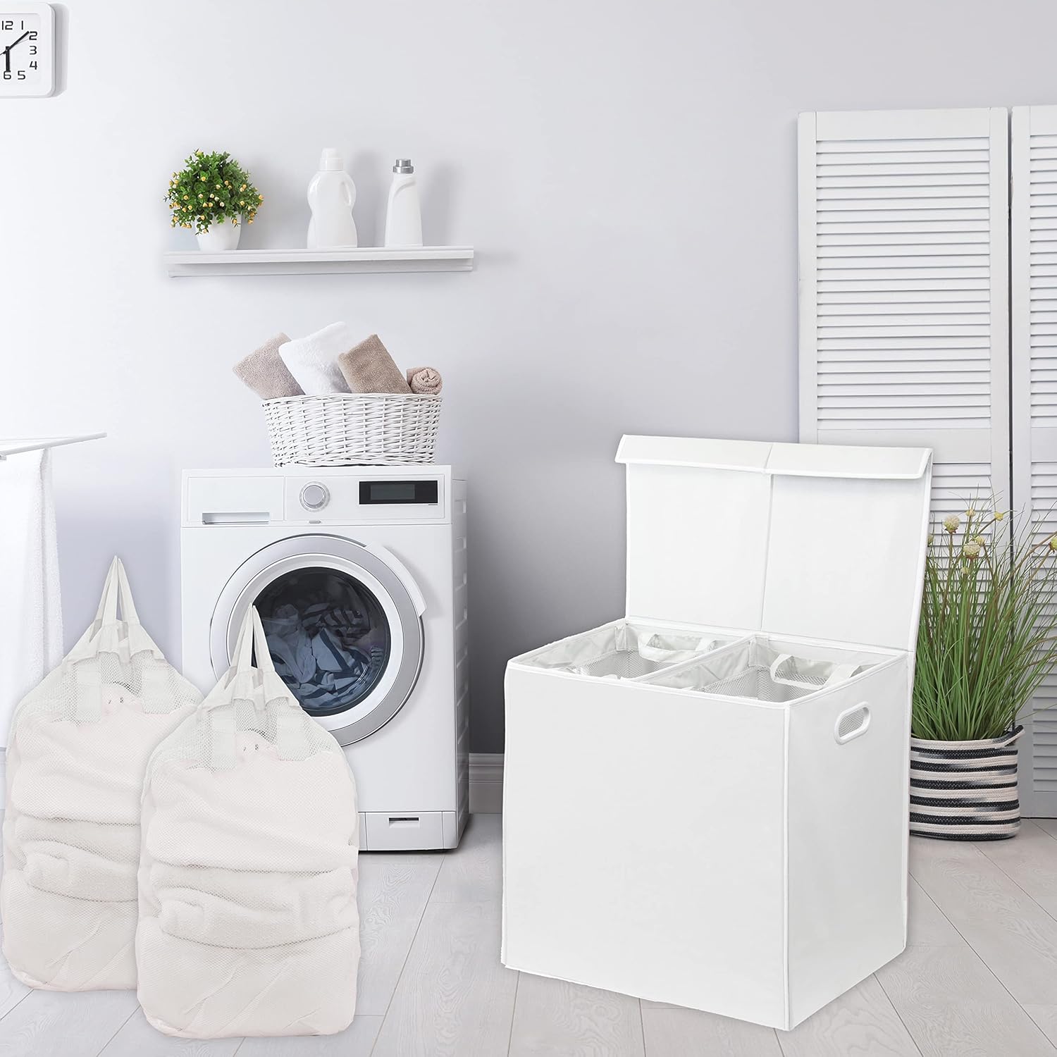 Simple Houseware Double Laundry Hamper with Lid and Removable Bags, White