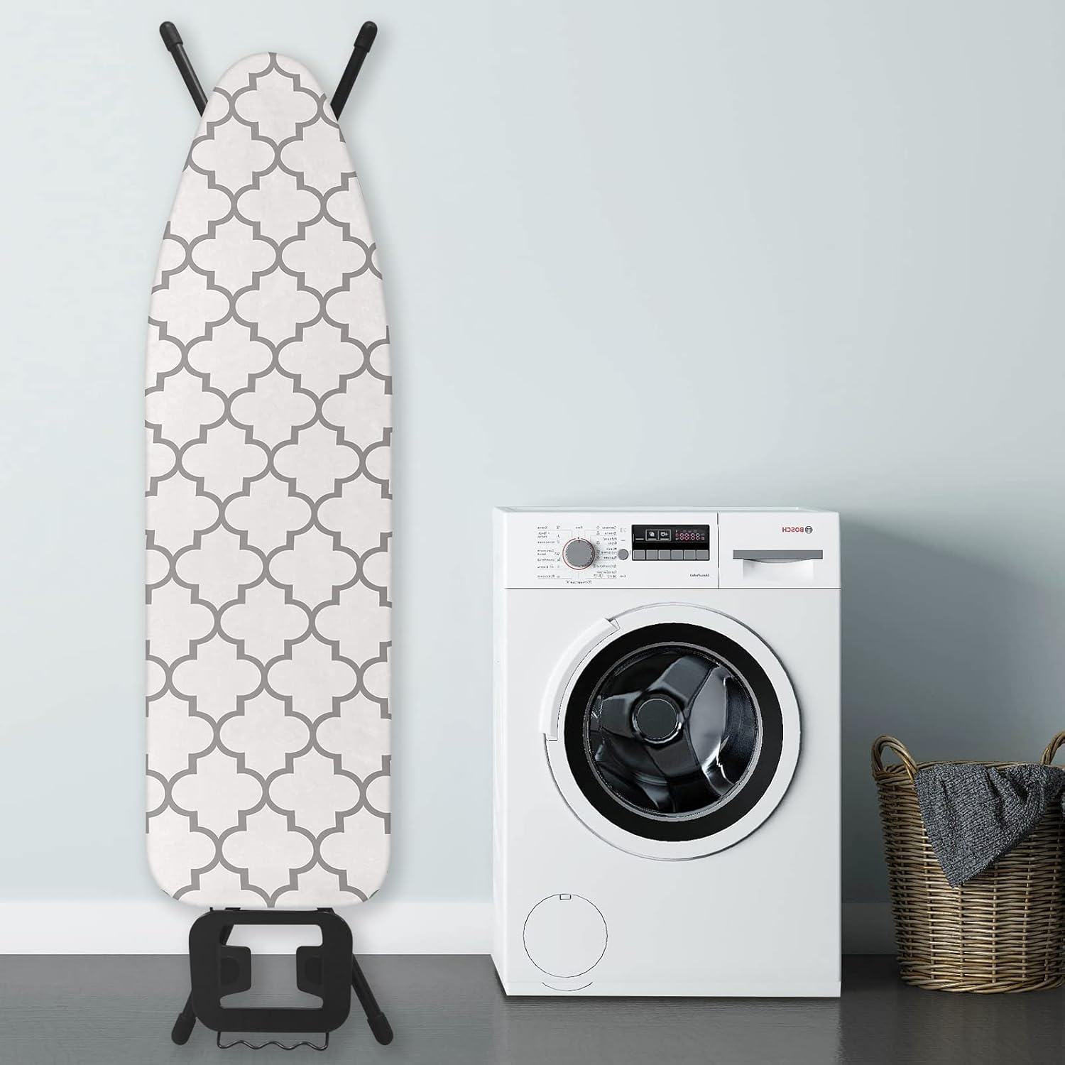 • FITS STANDARD SIZE BOARDS: this ironing board cover is designed to fit 13-15inch in width and 52-54inch in length standard full size ironing boards.Ironing board cover and pad varies in size,please measure your ironing board before purchase to avoid unnecessary trouble (Note:No Ironing Board included.)