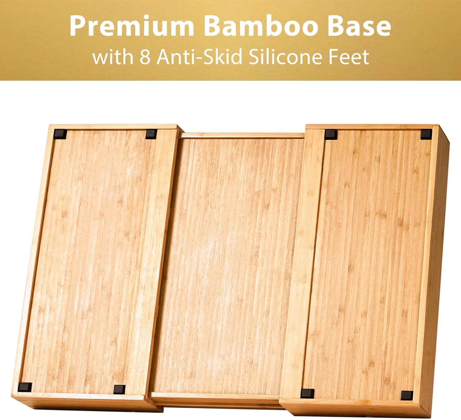 - ANTI-SKID: 8 big silicone feet keep this silverware organizer immobile and quiet when pulling out and pushing back the drawer.