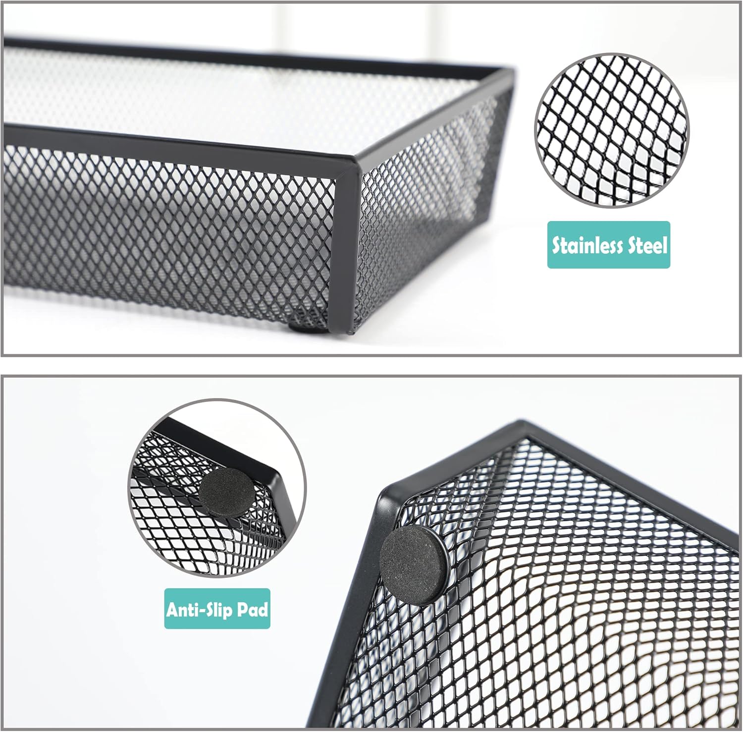 BYCY Silverware Drawer Organizer, Mesh Utensil Organizer for Kitchen Storage, Black Steel Metal Mesh Tray for Flatware Fork Spoon Knife (9x6-4P-Black)