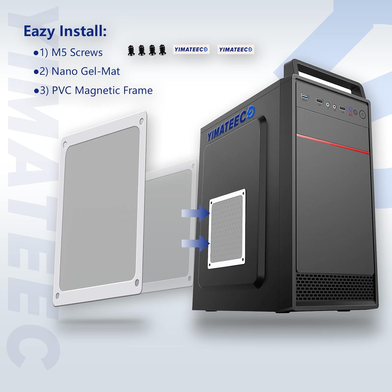 - 【DELIVERY LIST】YIMATEECO Provides: 2 x 140*140mm PC Dust Filter White (NYLON & PVC) + 4 x 40*10mm Nano Gel-Mat(Acrylic) + 8 x 5*10mm M5 Fans Screws(Q235 STEEL).