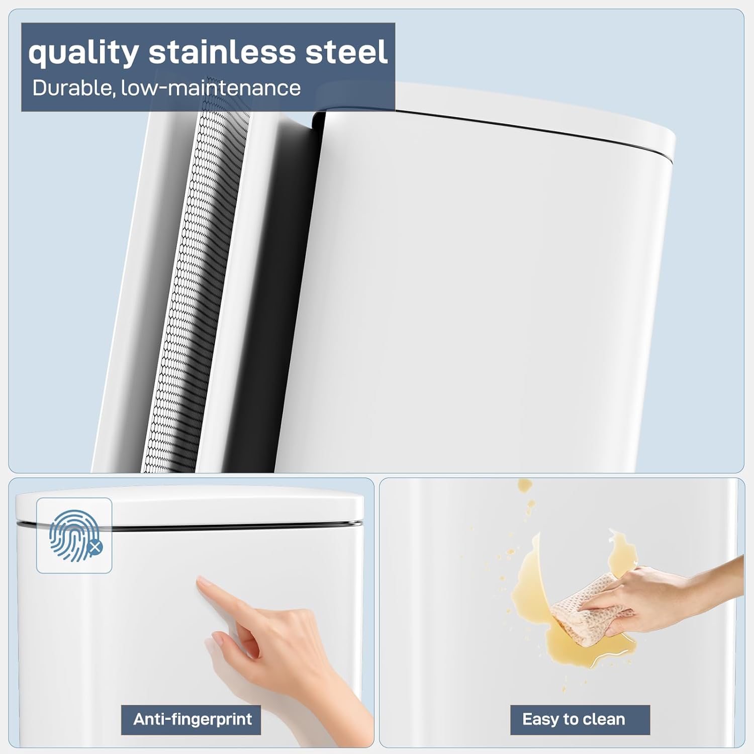 Arlopu 8 Gallon Step Trash Can, Stainless Steel Garbage Bin, Soft-Close Rubbish Bin with Removable Plastic Inner Bucket, Fingerprint-Proof, Lid Dustbin, Suit for Kitchen Home (White, 30L)