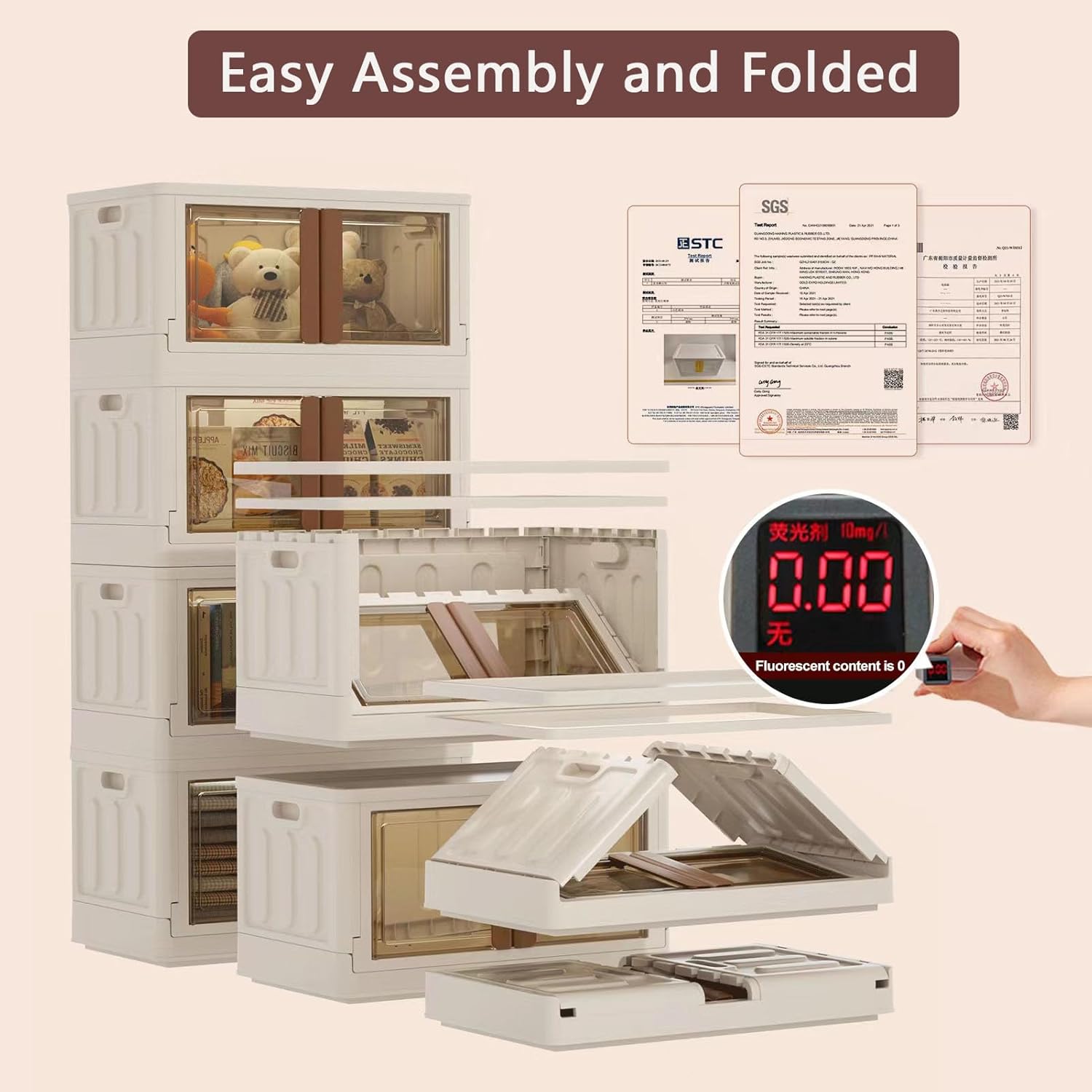 19Gal Collapsible Storage Bins with Lids & Wheels - 4 Pack Stackable with Doors, Heavy-Duty Plastic Cabinet for Home/Office, Milk White
