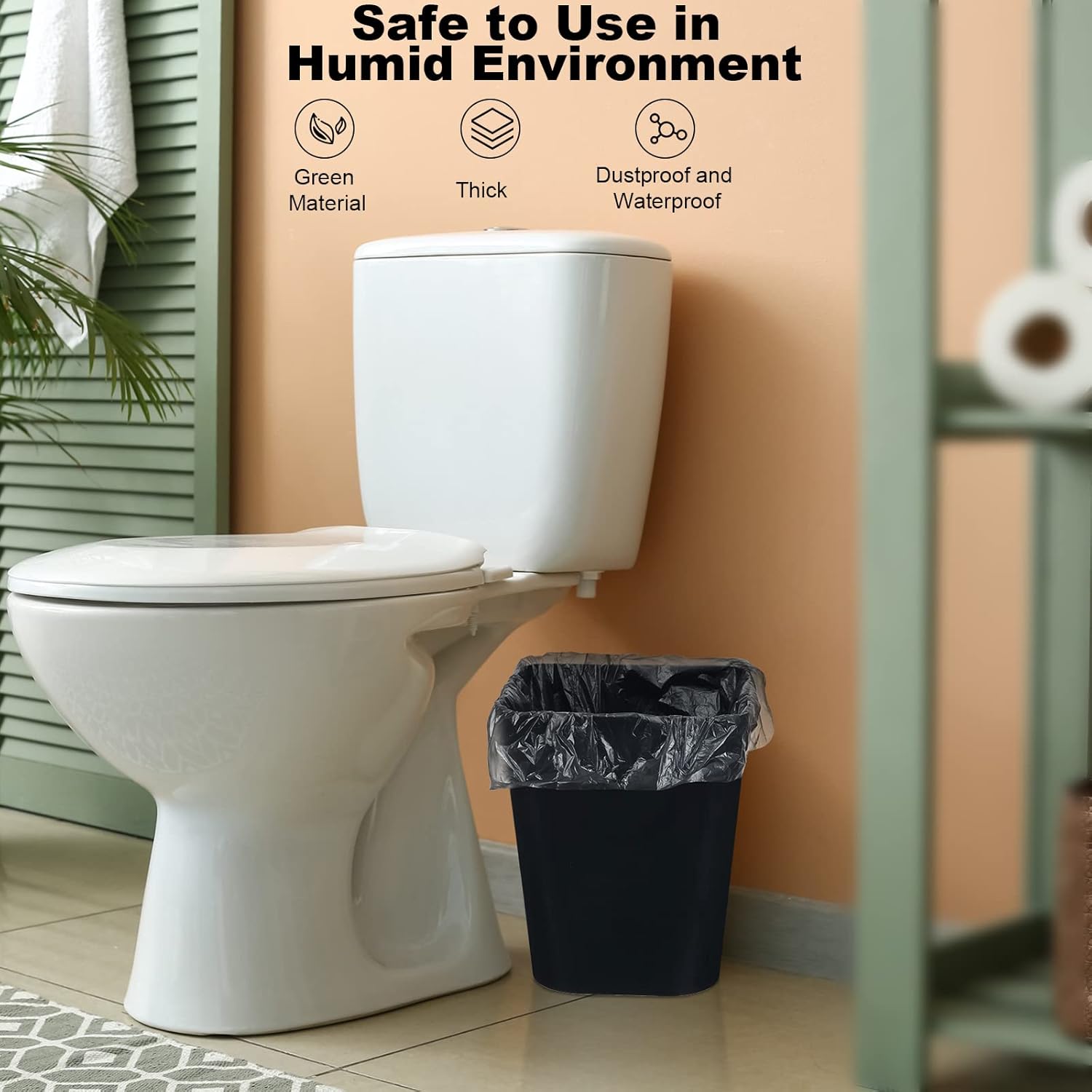 - Serviceable and Reliable: the bathroom trash can is made of thick PP material, light in weight but firm, stable at the bottom, not easy to topple, and will serve you for a long time; The plastic trash bags are made of PE material, which is firm and reliable, has certain load bearing capacity and toughness, not easy to break or leak