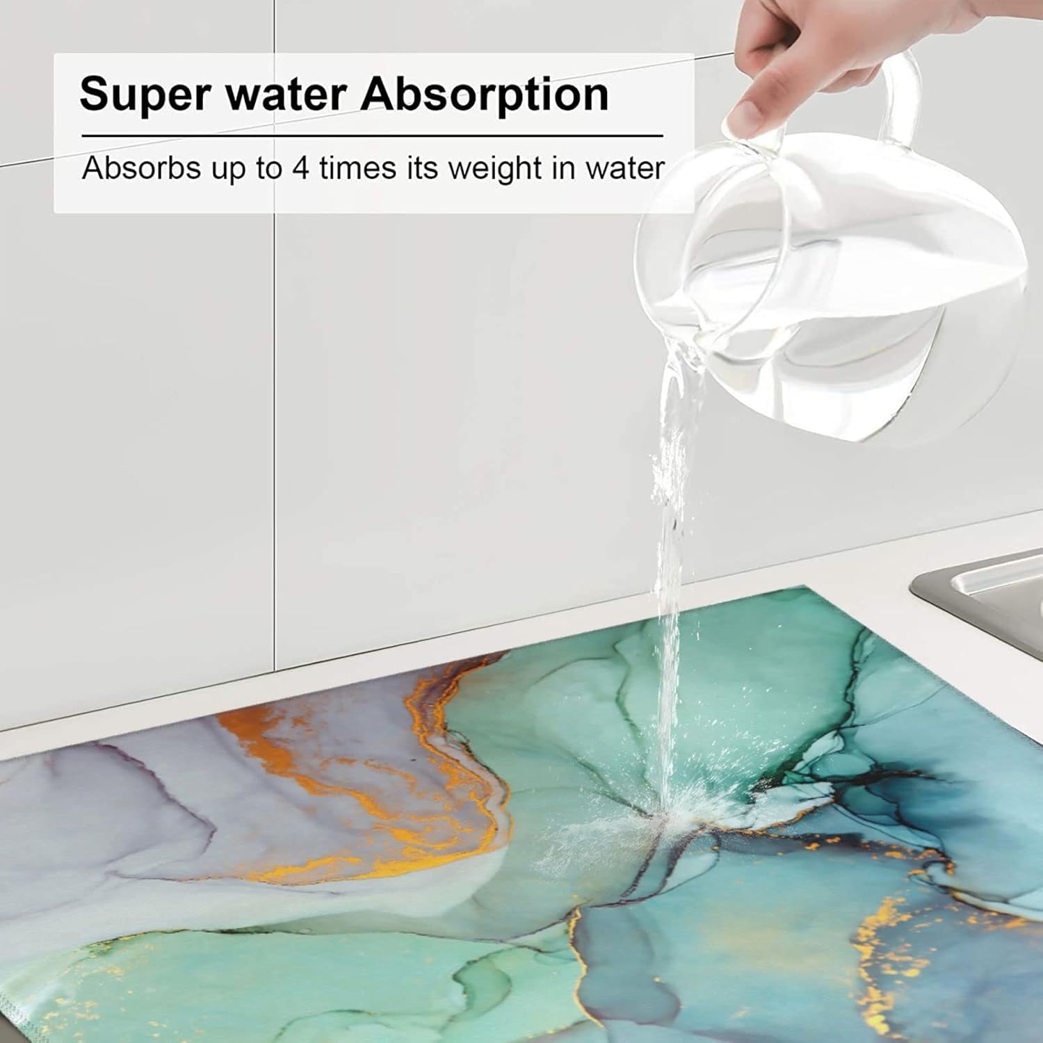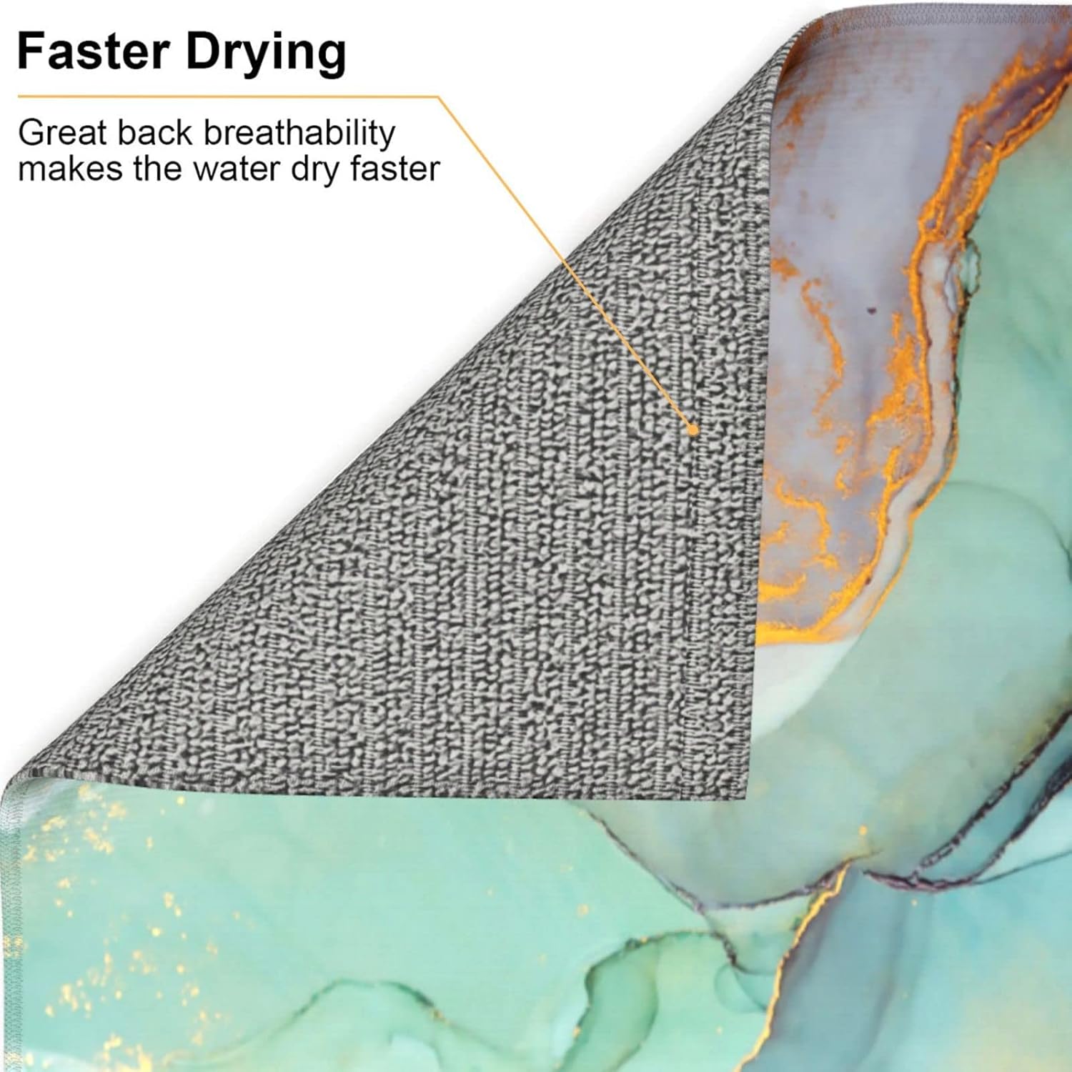 Teal Marble Golden Swirls Pattern Microfiber Dish Drying Mat For Kitchen Countertop Absorbent Reversible Drainer Rack Pad 18 X 16 Inch