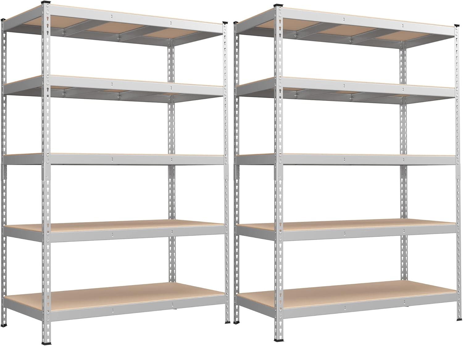 SONGMICS 5-Tier Storage Shelves, Load 2310 lb, Set of 2 Garage Storage, Boltless Assembly, Adjustable Shelving Unit, 23.6 x 47.2 x 70.9 Inches, for Study Shed Basement, Silver UGLR600E02