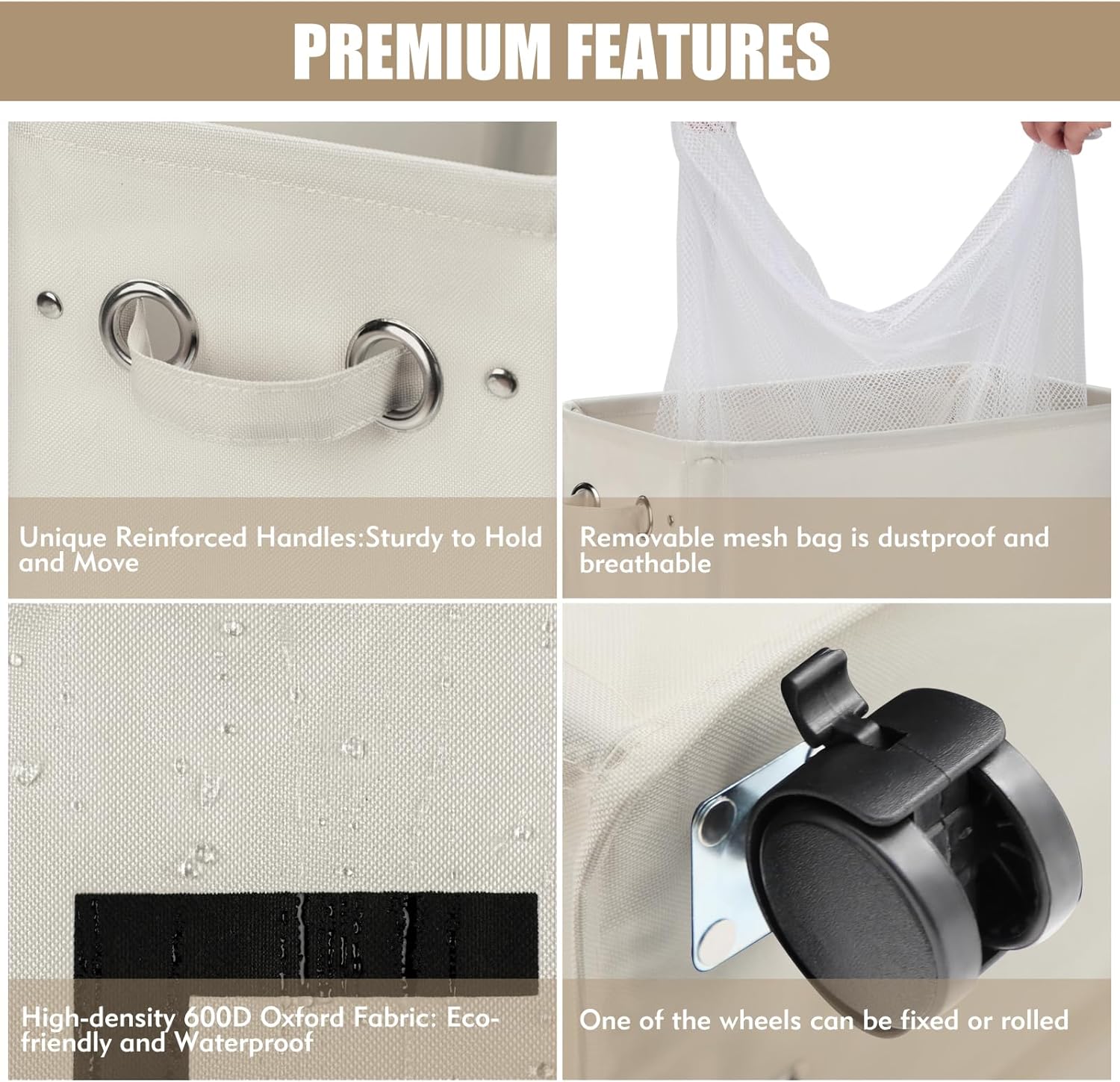 - 4 WHEELS - The laundry hamper on wheels is easy to move, brake on one of the wheels ensure safety for home use