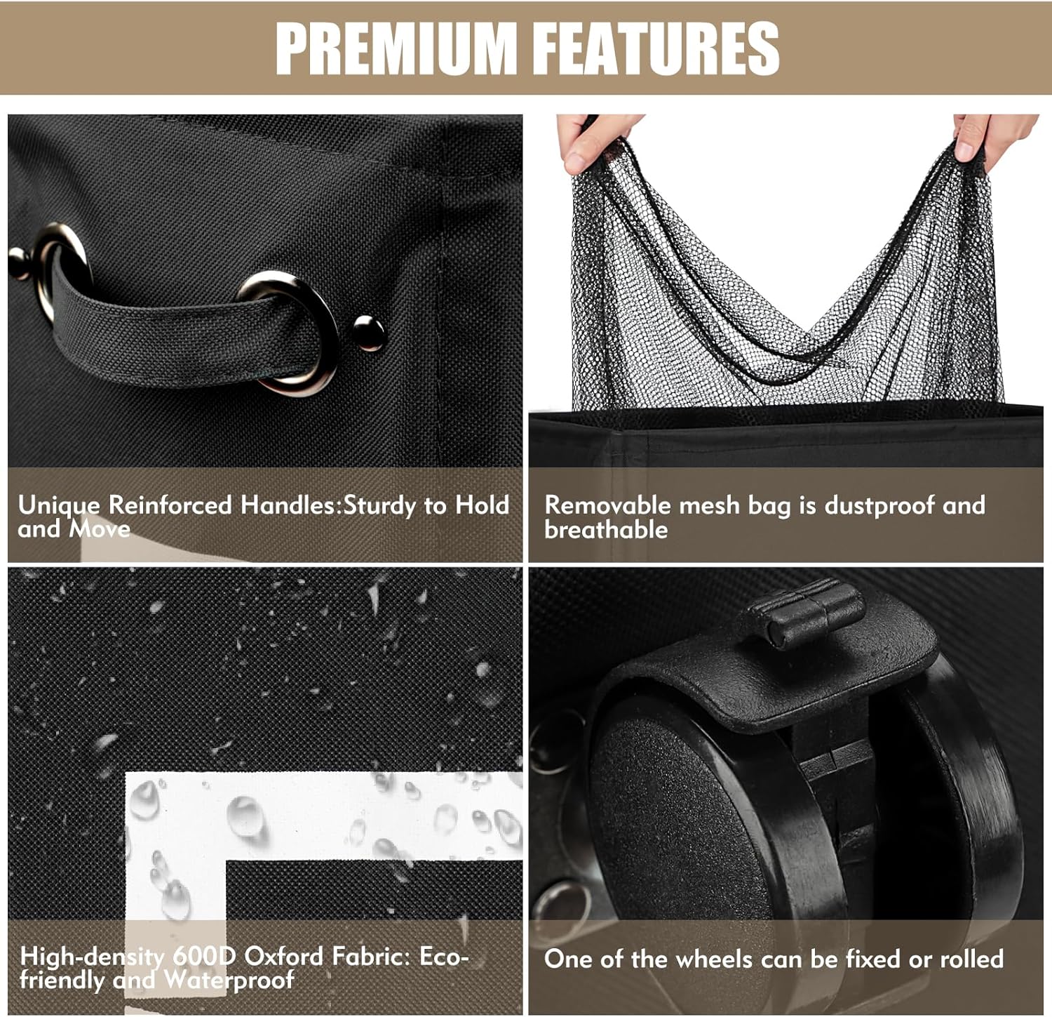 - 4 WHEELS - The laundry hamper on wheels is easy to move, brake on one of the wheels ensure safety for home use