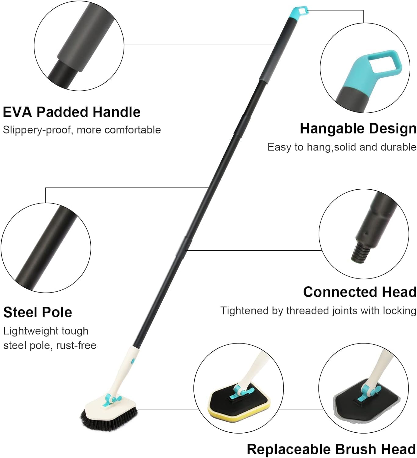 - APPLY TO ALL SURFACES: The scrub brush head features strength bristles for hard and soft scrubbing of tubs, tile walls, carpet, floor and so on