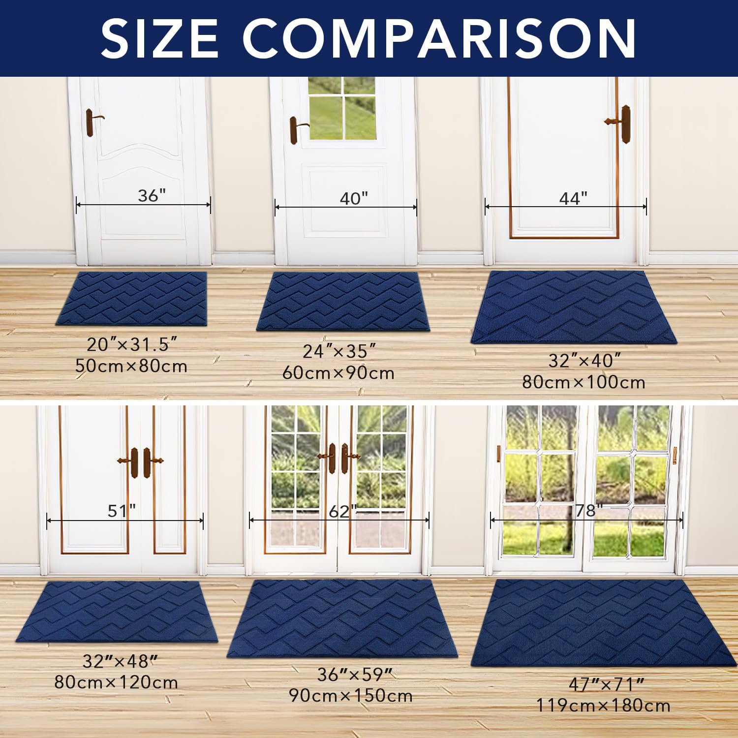 hicorfe Front Door Mat Outside Entrance,32"x40" Absorbent Muddy Dirt Resist Welcome Door Mats Outdoor Indoor,Stain and Fade Resistant,Non Slip Backing Entry Mat Doormat for Entryway(Navy Blue)