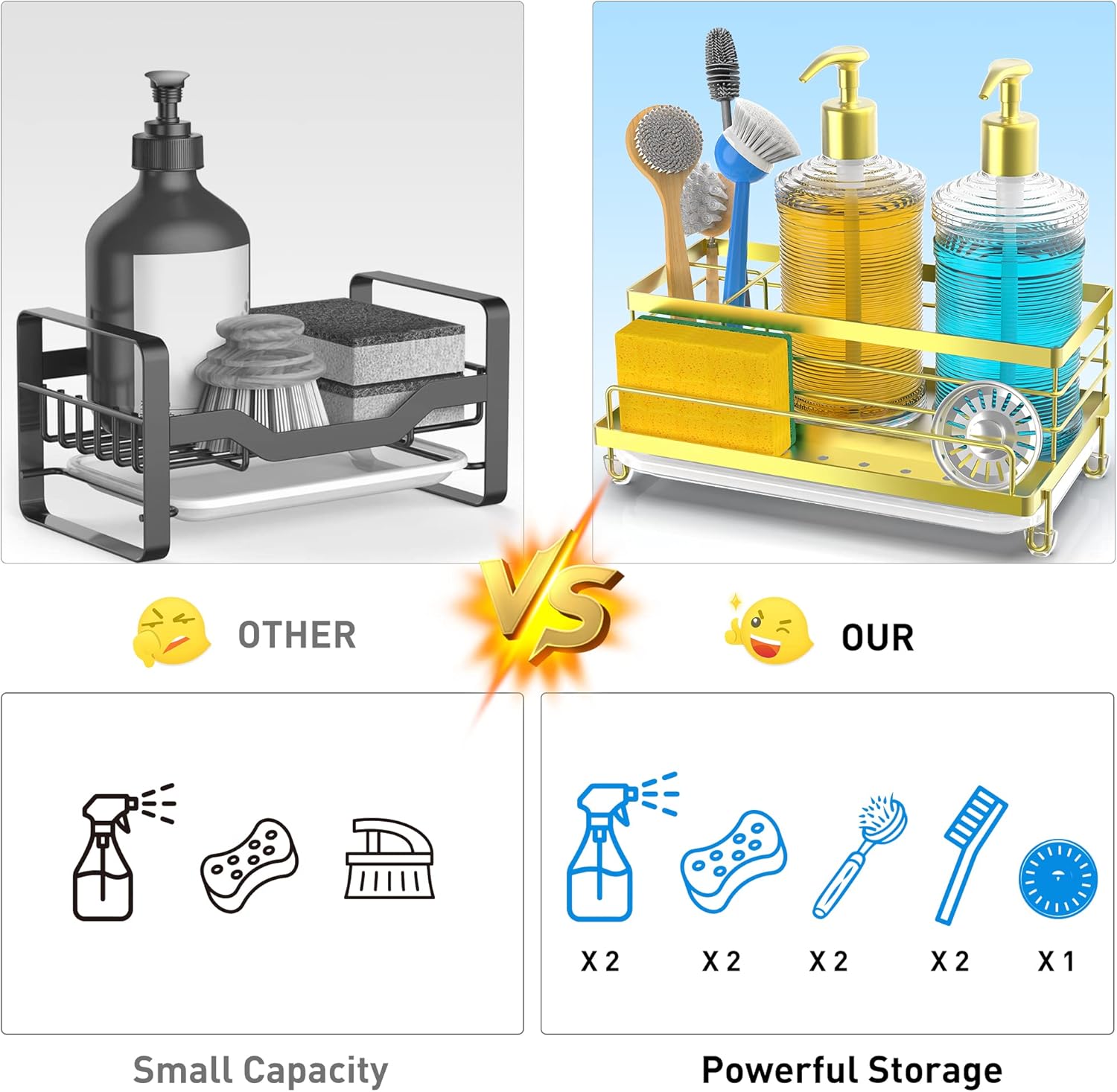 - 【ANTI-RUST STURDY MATERIAL】: We chose a stainless steel material more suitable for kitchen sinks to make the sink caddy and added sandblasting technology to the surface for secondary protection. This improves the corrosion and scratch resistance of the sponge holder, which will still look new after long-term use.