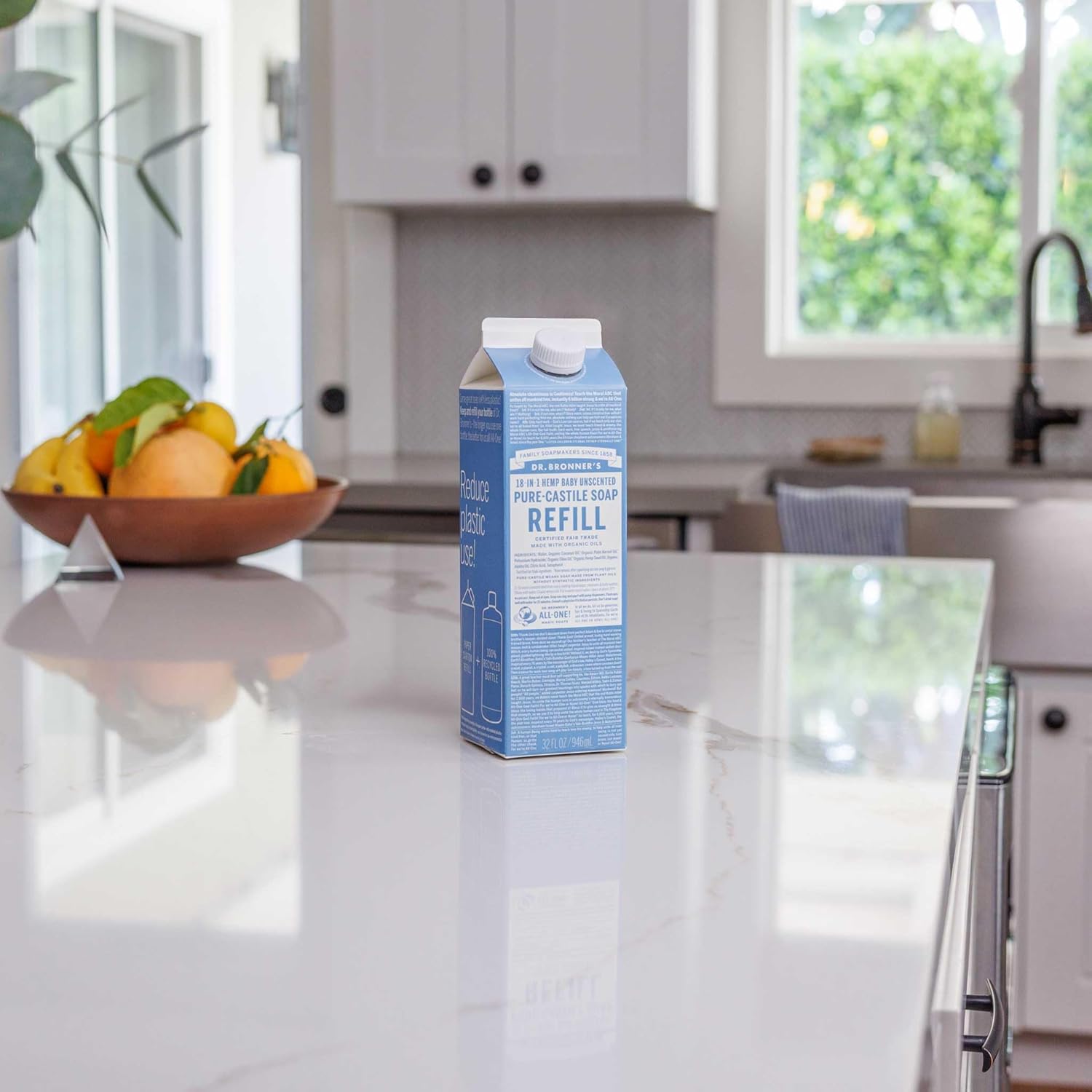 Dr. Bronner's Pure-Castile Liquid Soap Refill - Made with Regenerative Organic Certified Oils, 86% Less Plastic - 18-in-1 Uses, For Face, Body Wash, Hand Soap Refill & More - Baby Unscented, 32oz