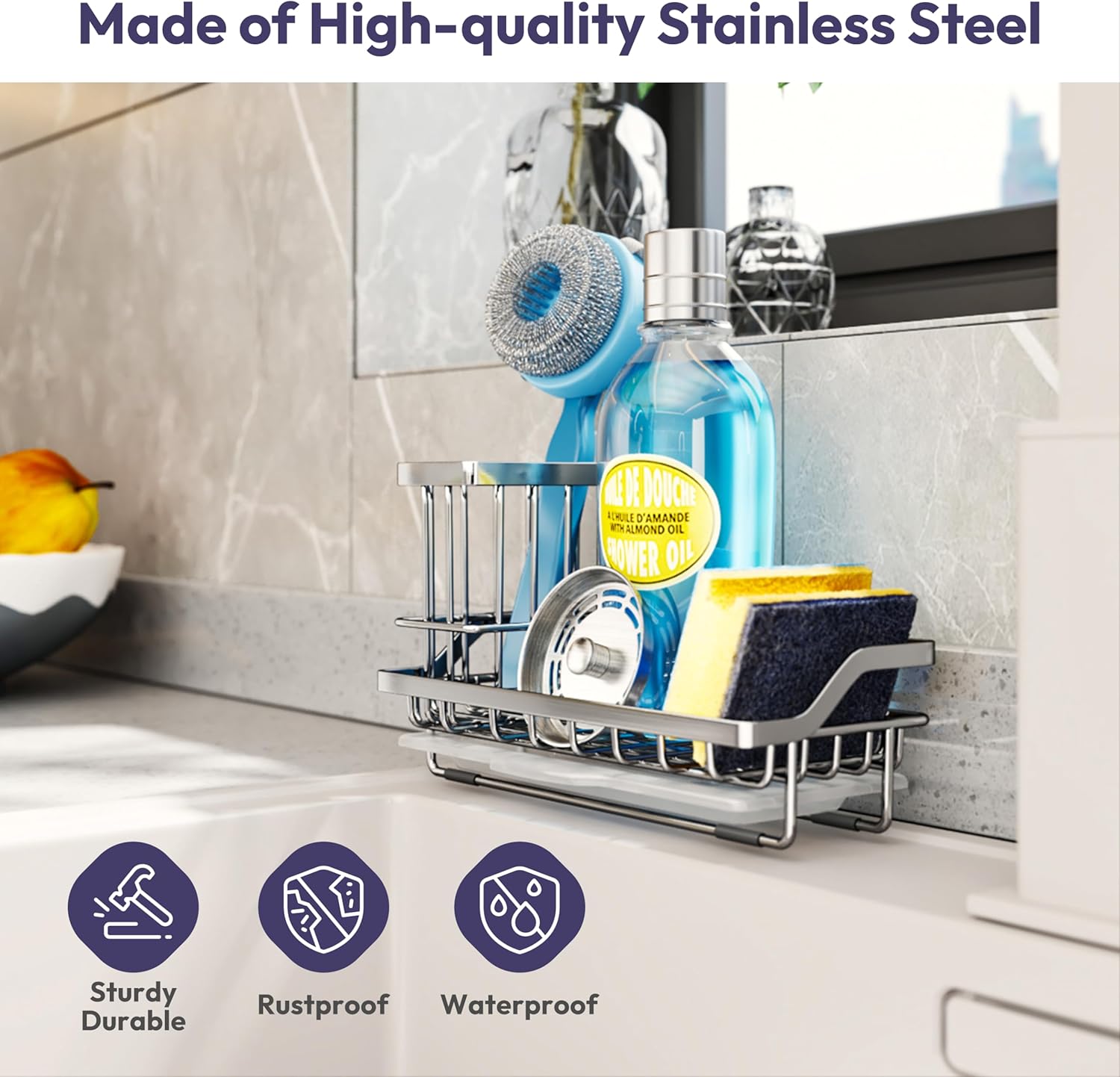 - [Sturdy & Durable]: This sponge caddy for kitchen sink is made of high quality stainless steel material, which can effectively prevent the product from rusting and deforming easily, can ensure the dish brush holder is durable and anti-corrosion and rust