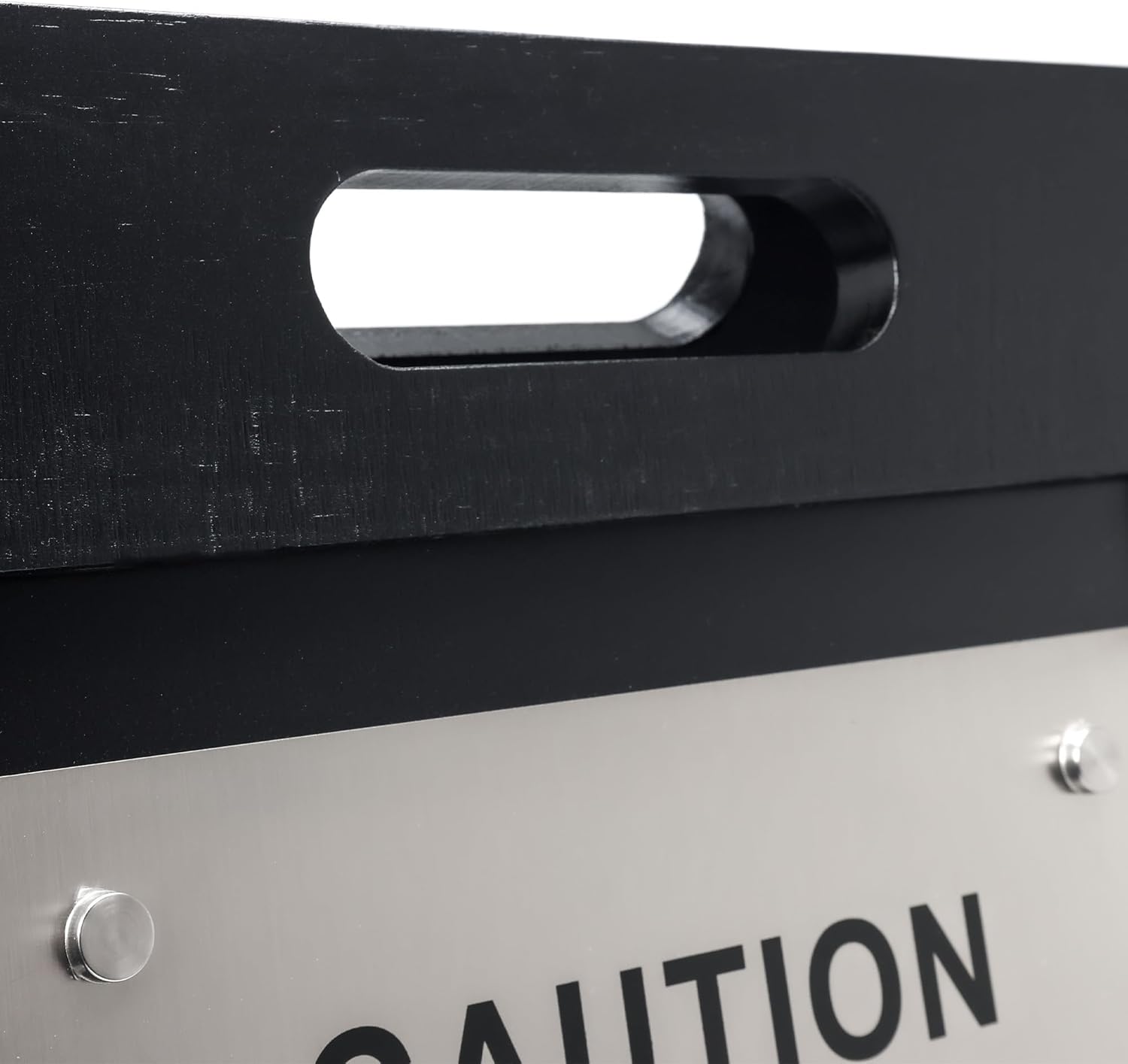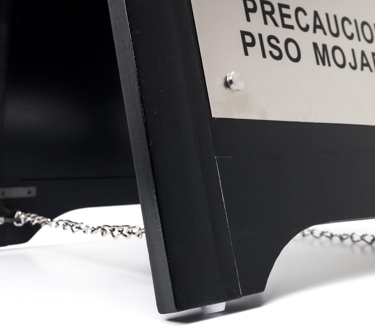 Premium Wooden Caution Wet Floor Sign – Bilingual w/ Non-Skid Plastic Feet – For Hotels, Schools, Offices, Areas, Restrooms, Pool Decks & Shops - Black Wood/Brushed Nickel Plate
