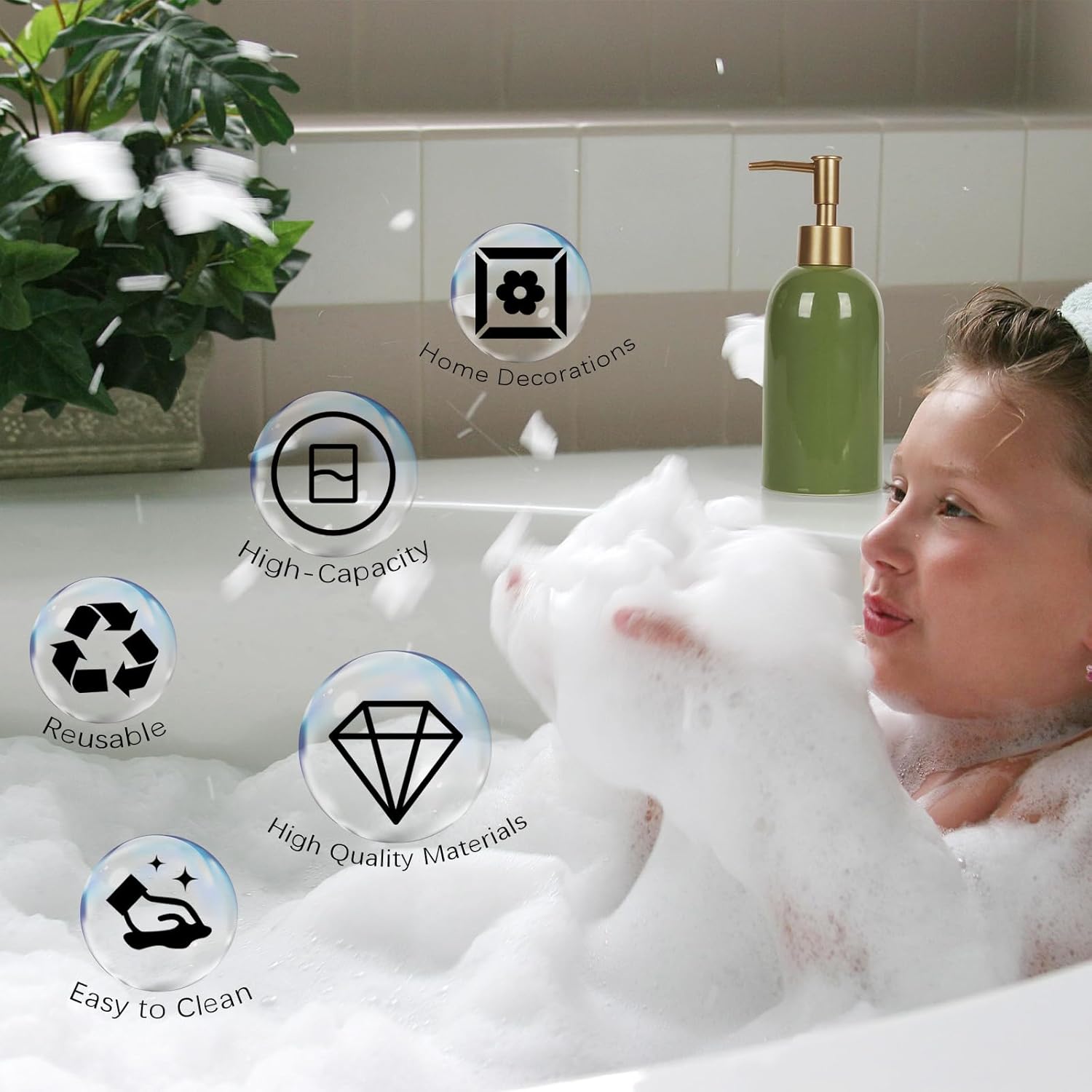 Natheeph 14OZ Ceramic Soap Dispenser Ceramic Soap Pump Dispenser Can Fill Liquid for Bathroom/Kitchen (2PC Green)
