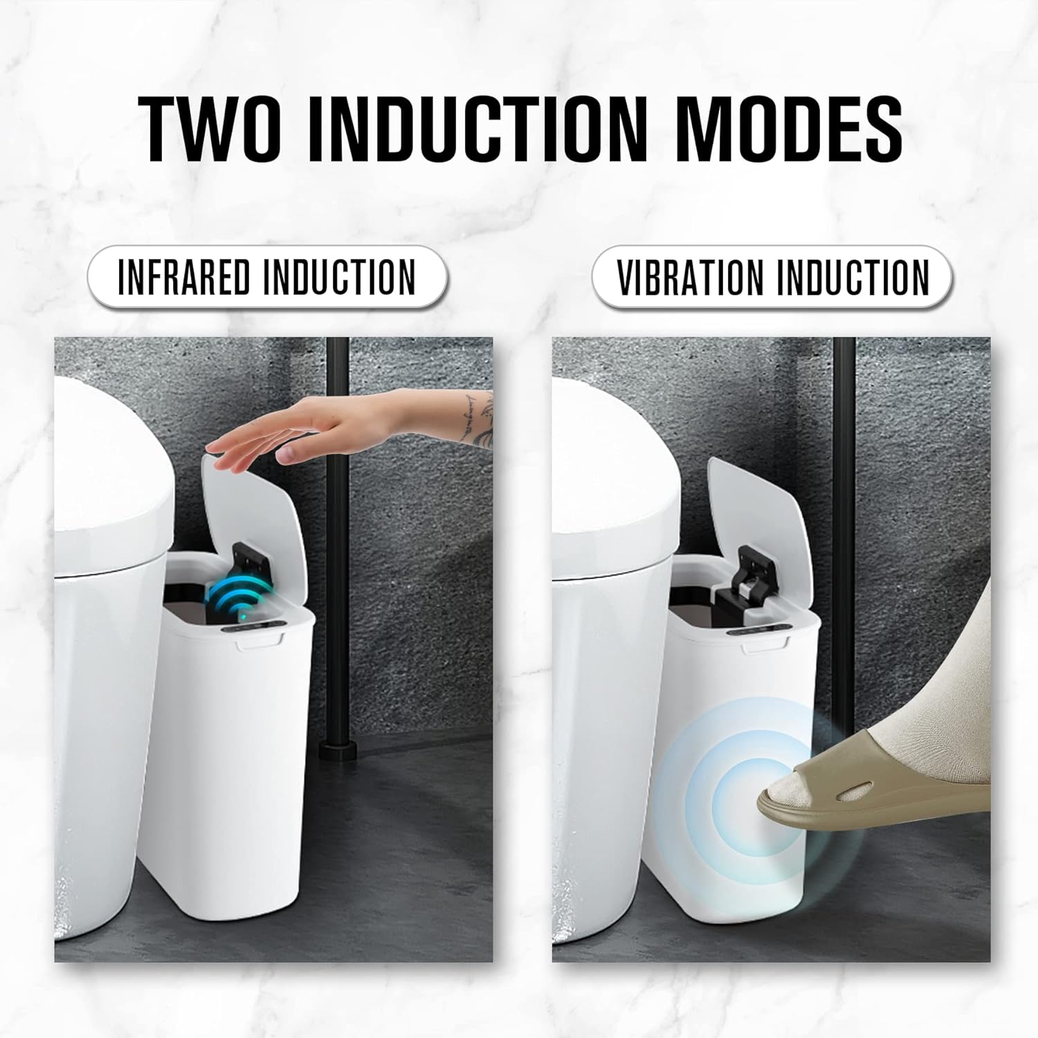 - Designed for Narrow Spaces: Our smart trash can has a slim shape that makes it a fit in a bathroom or wherever space is tight. Are you still annoyed that the narrow space in the room is being wasted? Use it to improve your space utilization