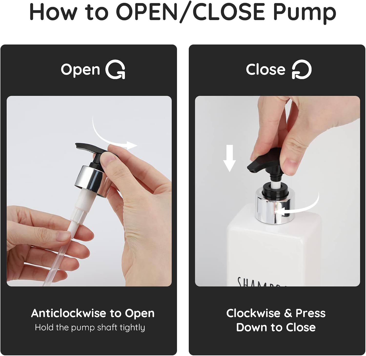 - 【Easy to Refill and Use】Remove the pump head and refill lotion with the wide mouth. Gently press the pump head to dispense it.
