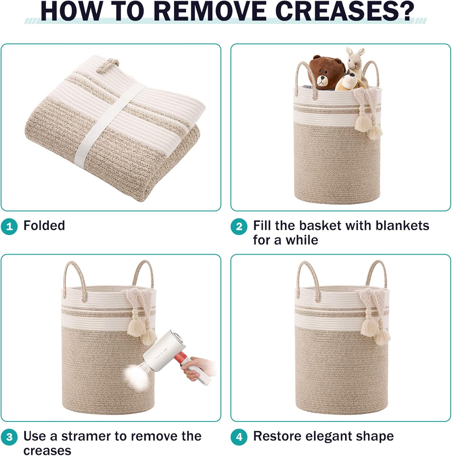 - 【Multipurpose Storage Baskets】100L capacity basket can keep things organized in a stylish and decorative way. You can use them to store extra towels, blanket, clothing, toys for baby and dogs, books, pillows or any other household items around the house, anything you can imagine