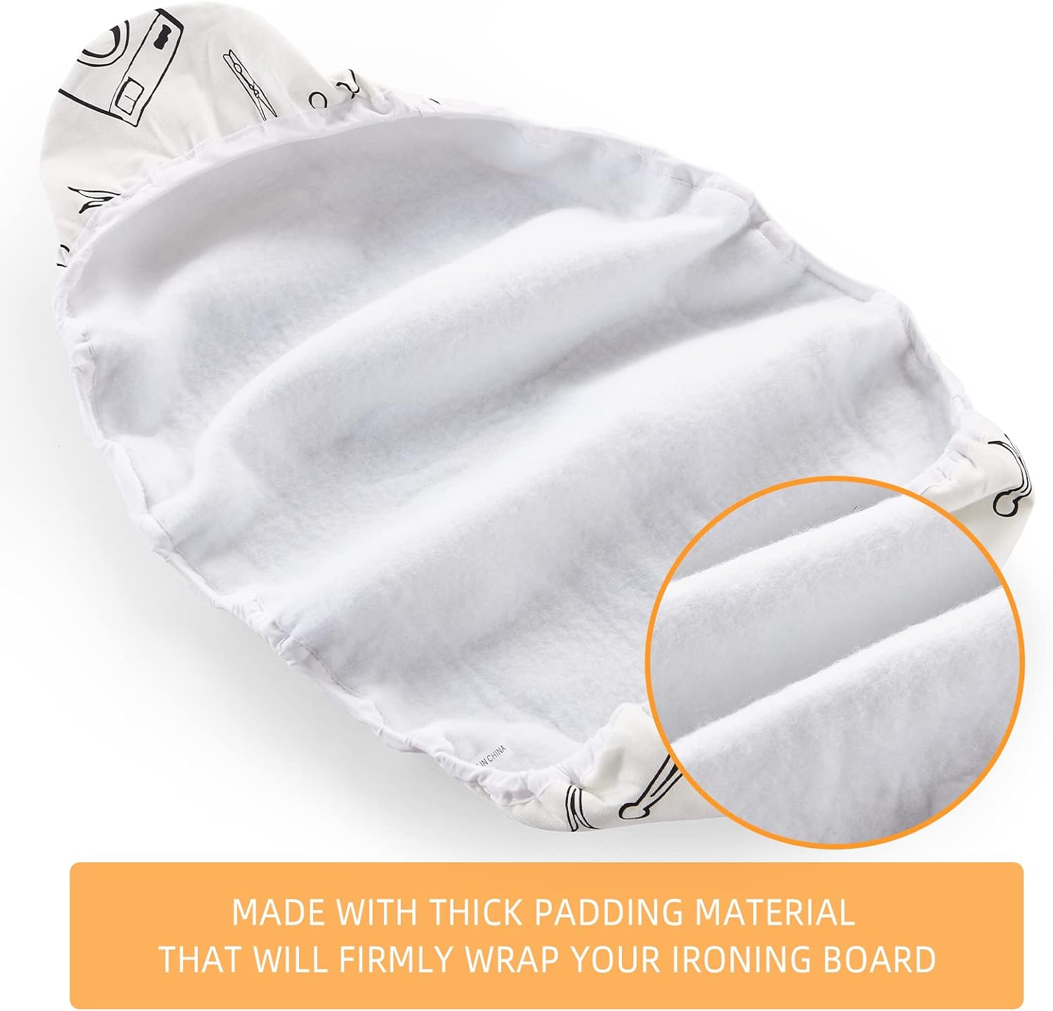 - EXTRA THICK MATERIAL FOR BETTER IRONING: This ironing board cover adopts natural breathable cotton with scorch resistant finish as cover. Using ultra thick stitched fibers, the thickness can reach 6mm. This synthetic fiber evenly radiate heat and steam, achieve high temperature ironing and safer