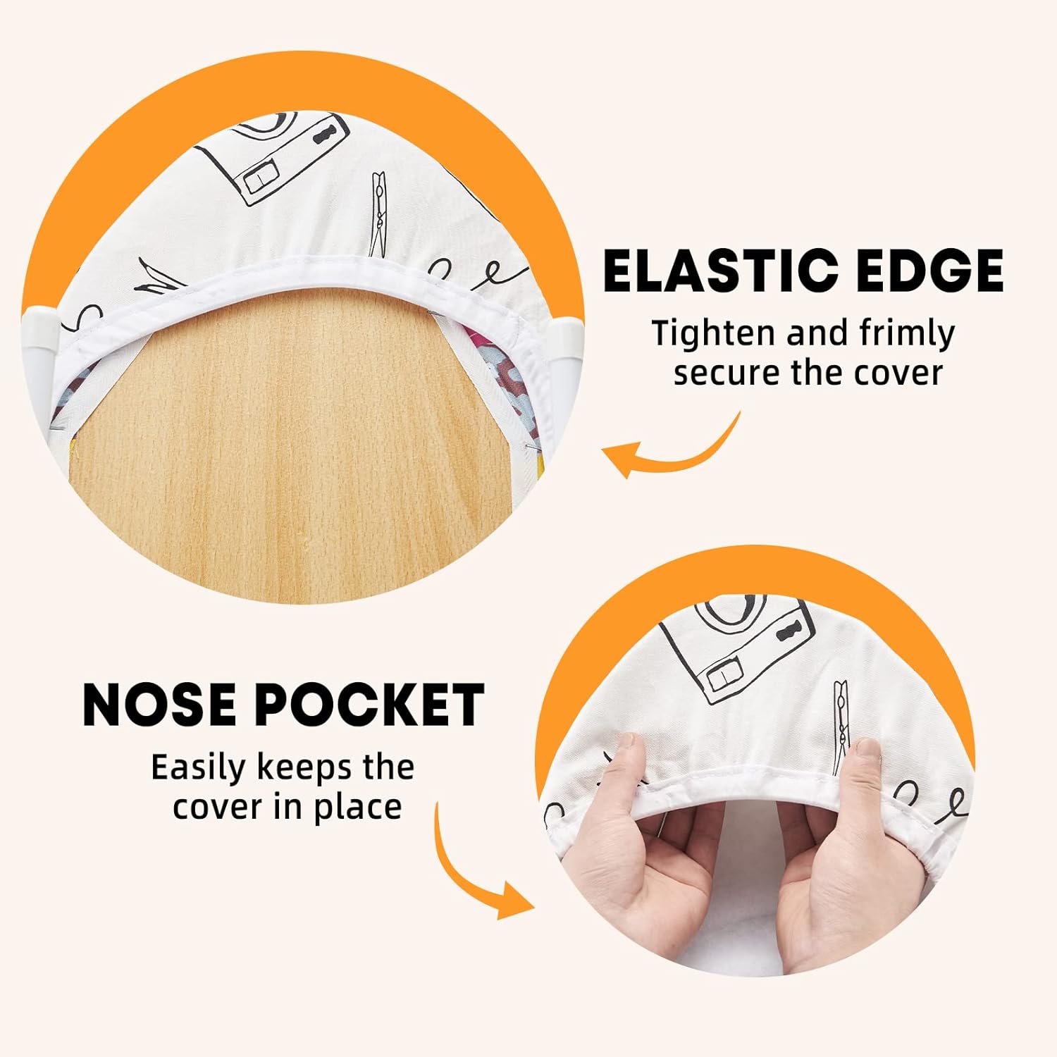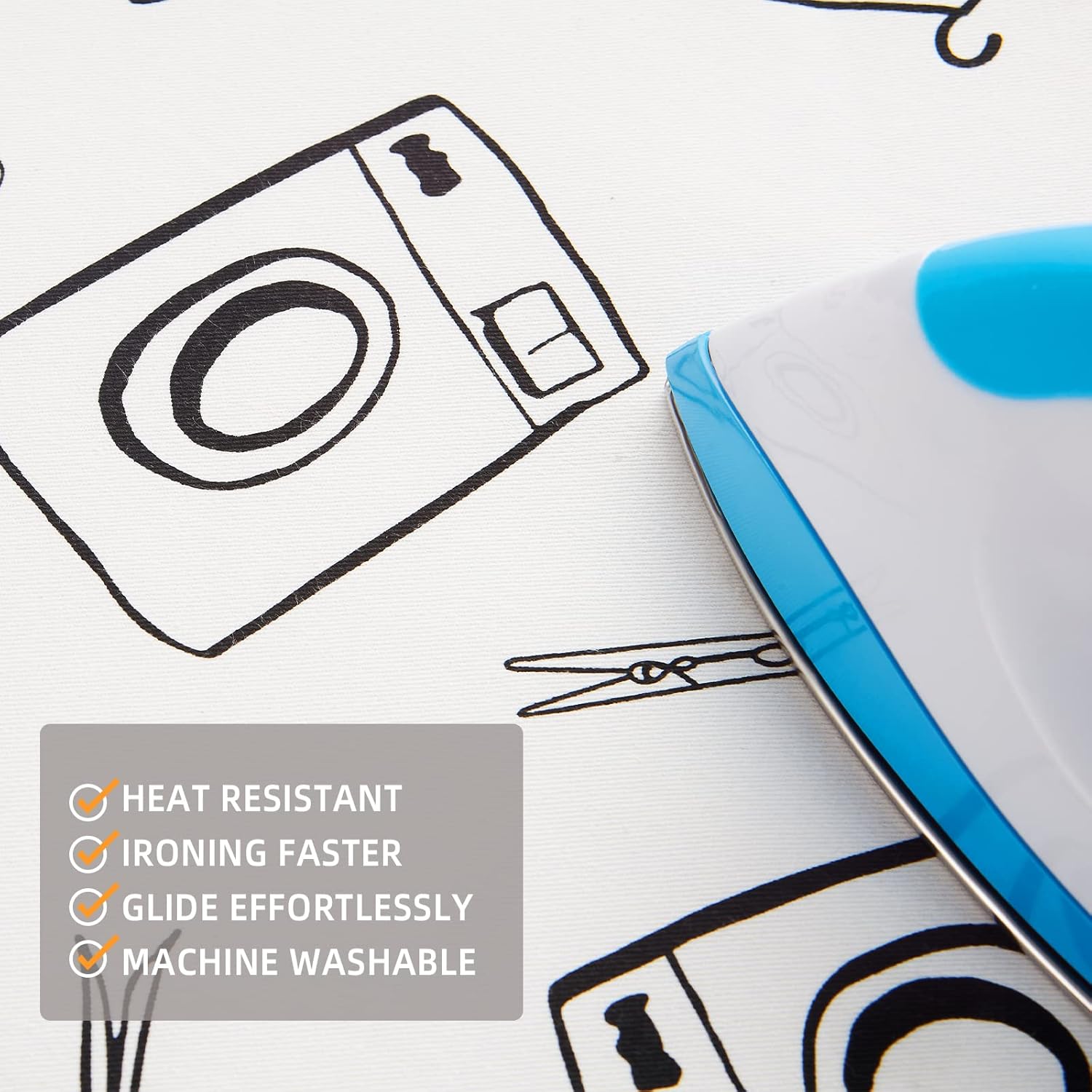 - ELASTICIZED EDGES: The tailor made high quality elastic skirt can firmly fix the ironing cover so that it is tightly attached to the ironing board
