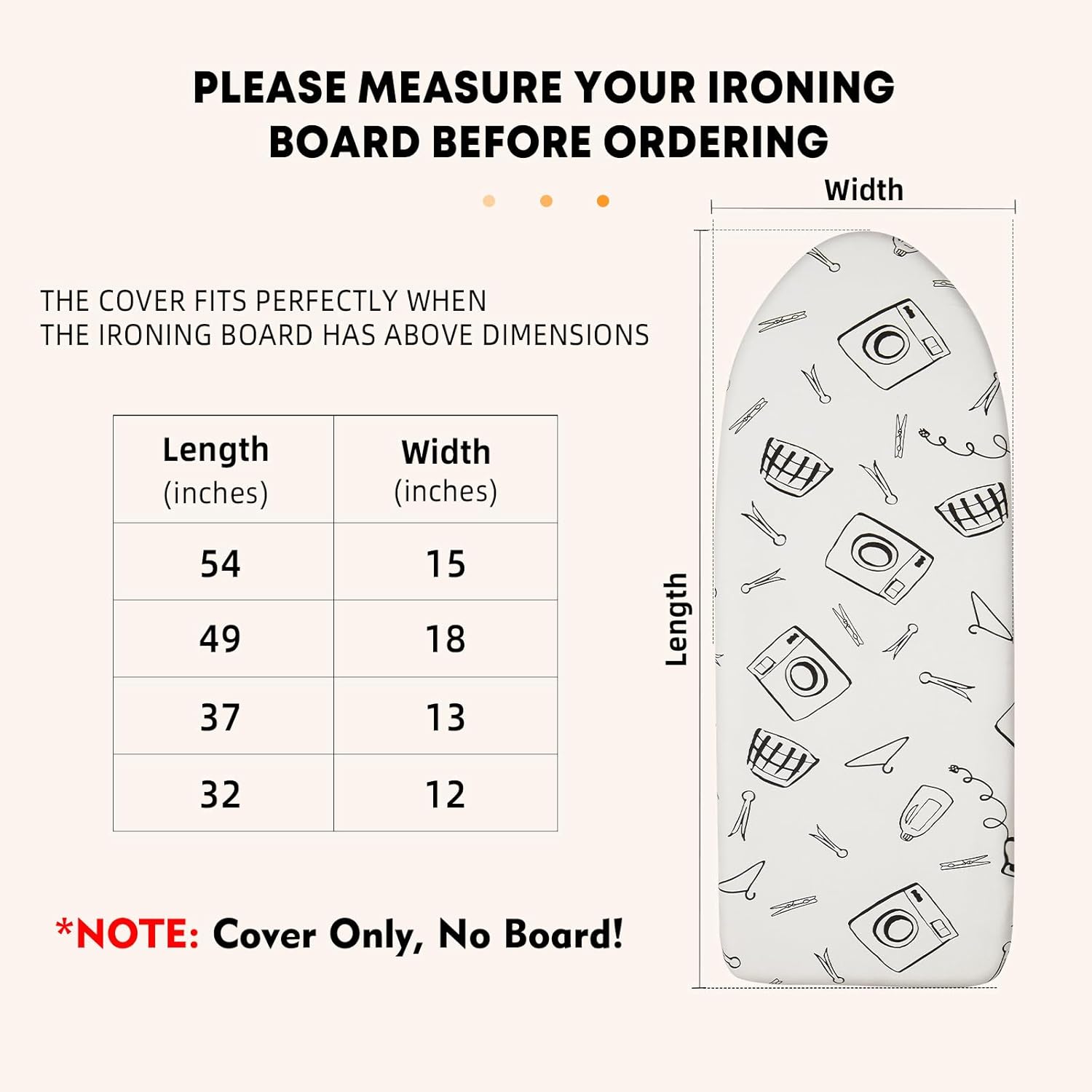 - SUITABLE FOR SMALL IRONING BOARD: Our ironing board cover designed for board to 32 x 12 inches. Suitable for small size table top ironing boards and over the door ironing board. Note: Ironing board is NOT included
