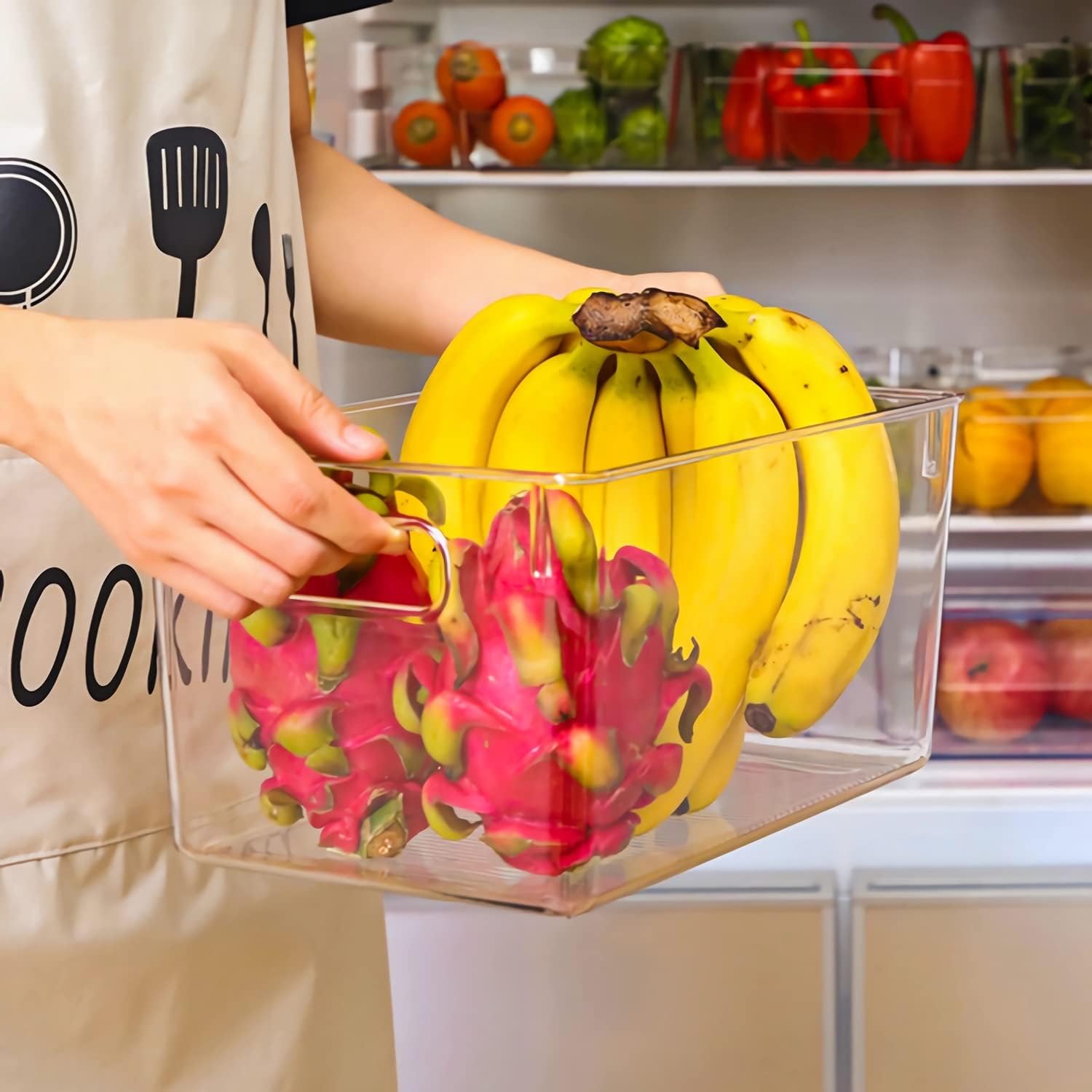 - 【CLEAR DESIGN】 - The plastic transparent design bins allows you to find what you need easily and quickly, saving a lot of searching time and keeping things tidy. These clear fridge storage bins can be used in refrigerators, cabinets, pantries, bathrooms, bedrooms, offices, drawers, playrooms, kitchens and vanities, etc.