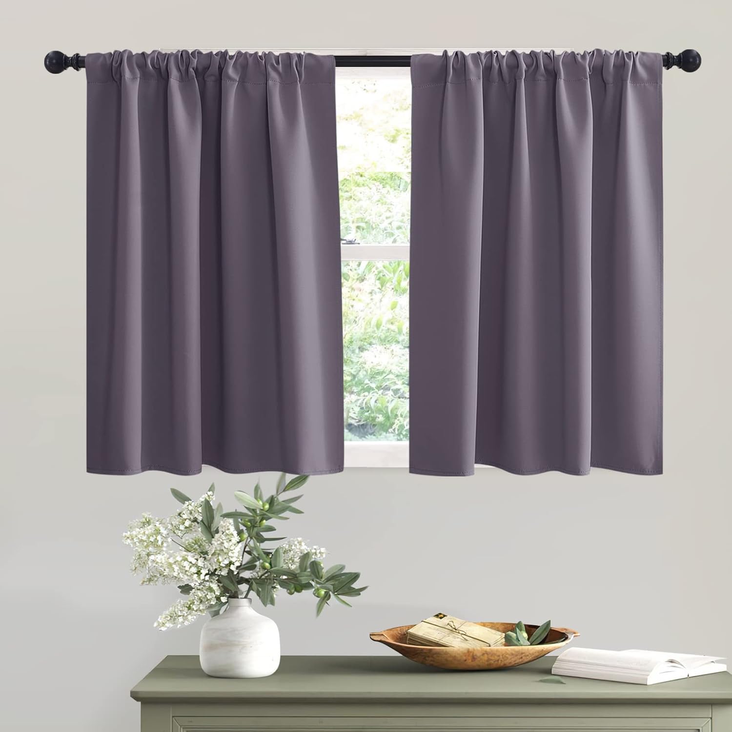 RYB HOME Bathroom Window Curtains - Blackout Curtains Small Window Short Drapes for Kitchen Bedroom Living Room Kids Nursery Room RV, W 42 x L 36 inch per Panel, Greyish Purple, 2 Pcs