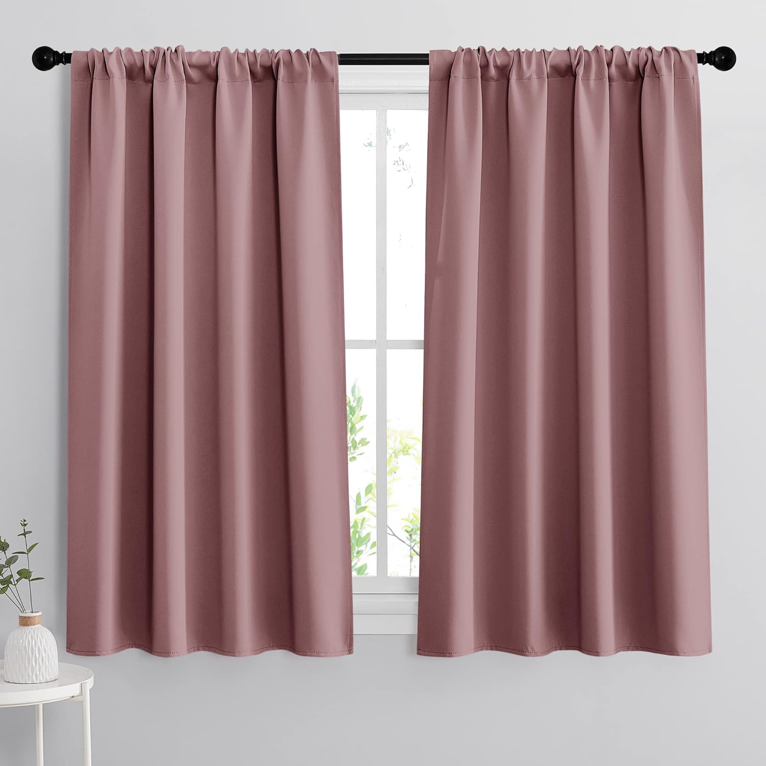 RYB HOME Bedroom Curtains Blackout - Light Block Energy Efficiency Small Window Treatment Drapes for Kitchen Dining Baby Nursery Morden Decor, W 42 x L 54 inch, Dusty Rose, 2 Panels