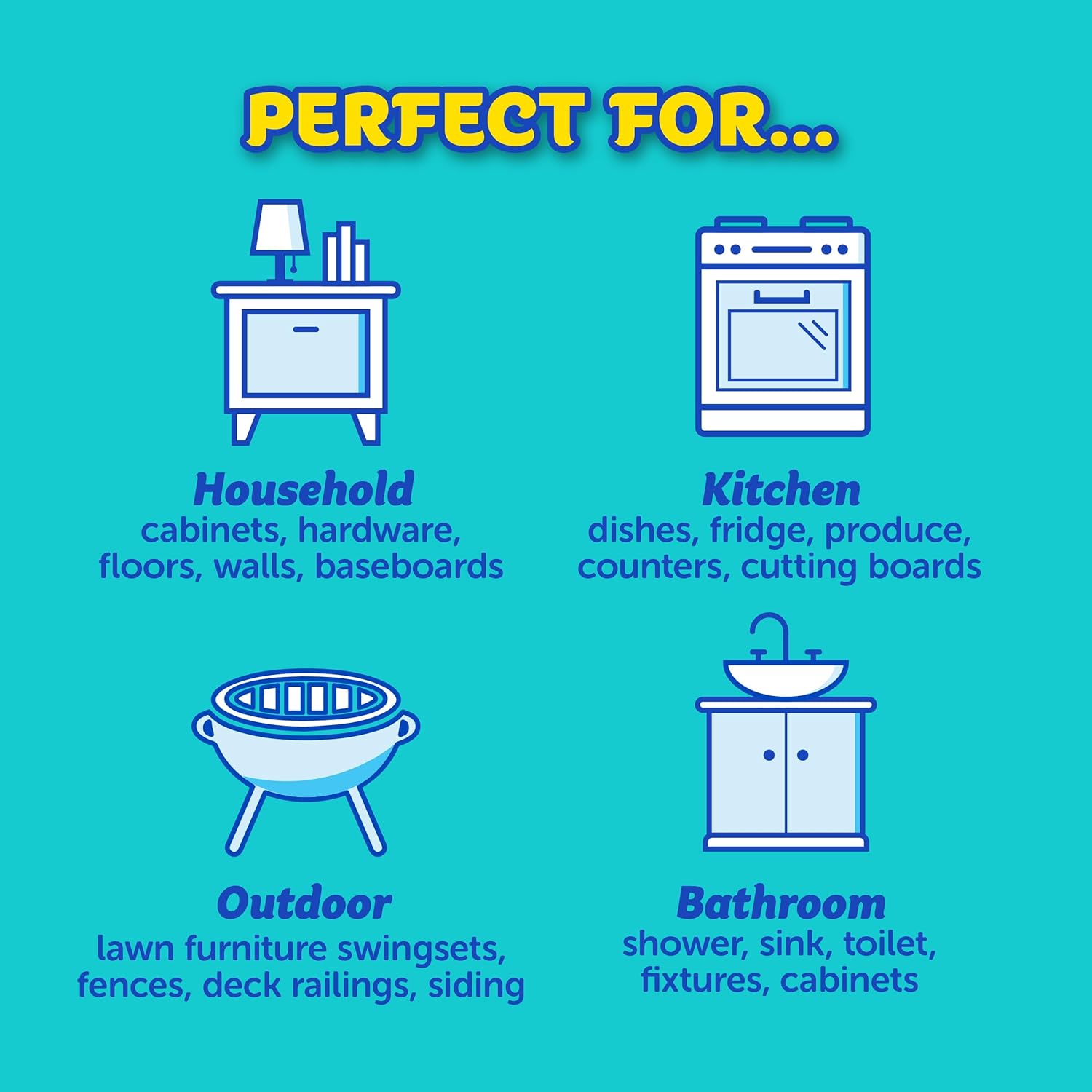 - Do Not Use on Textiles or Linoleum - Our formula packs a powerful punch as an outdoor wood cleaner and indoor tile cleaner but isn't ideal for every surface. A little goes a long way to remove all kinds of soap scum and food stains throughout the home. Use in tandem with our Original Scrub Daddy for a home so clean it'll leave you smiling.