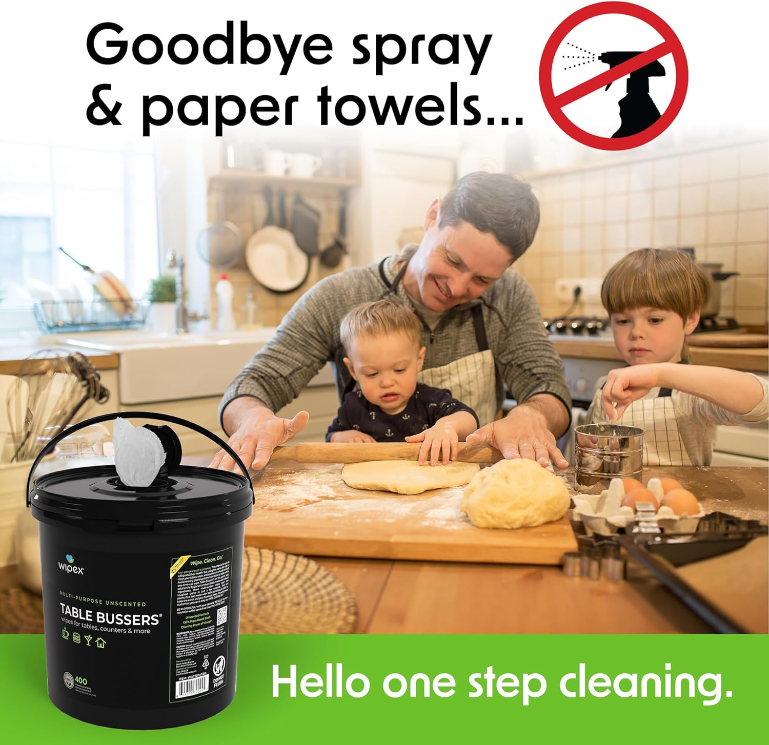 Wipex Table Bussers - Natural Cleaning Wipes for Multi Surface Cleaning, Cleaning Vinegar in Plant Based Sanitizing Wipe, Clean Restaurant Tables, Counters and Household Items, 400 Count (Pack of 2)