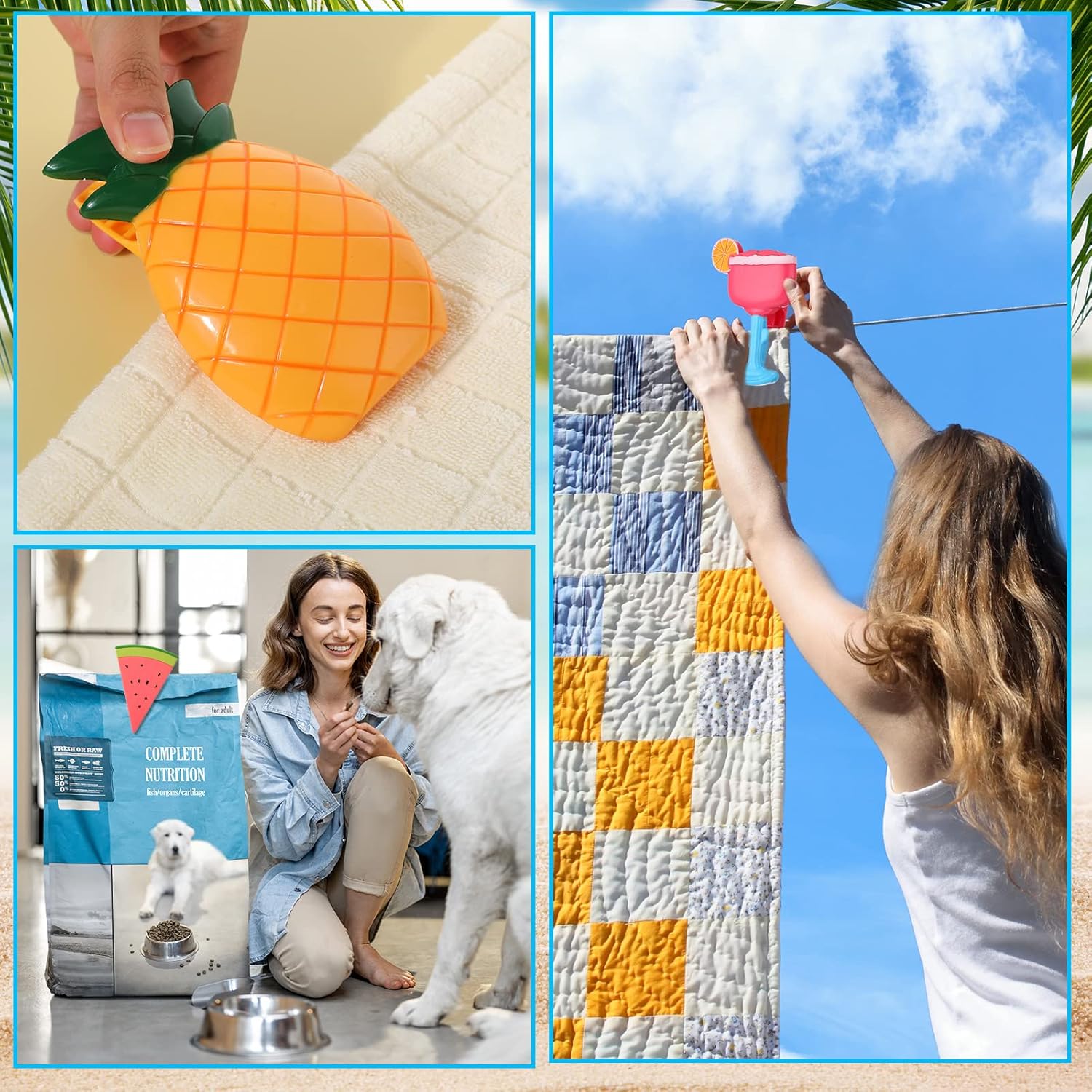 - Cute and Funny: the decorative beach towel clips adopt champagne glass, pineapple, margarita cup, watermelon, styles, look cute and funny, you can use them to clip clothing, towels, and bedding