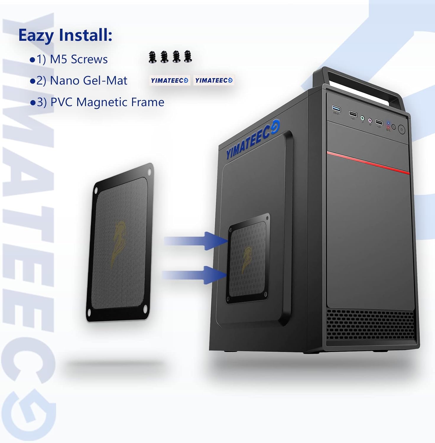 - 【DELIVERY LIST】YIMATEECO Provides: 5 x 140*140mm PC Dust Filter Gentleman Aesthetic (PVC) + 10 x 40*10mm Nano Gel-Mat(Acrylic) + 20 x 5*10mm M5 Fans Screws(Q235 STEEL).