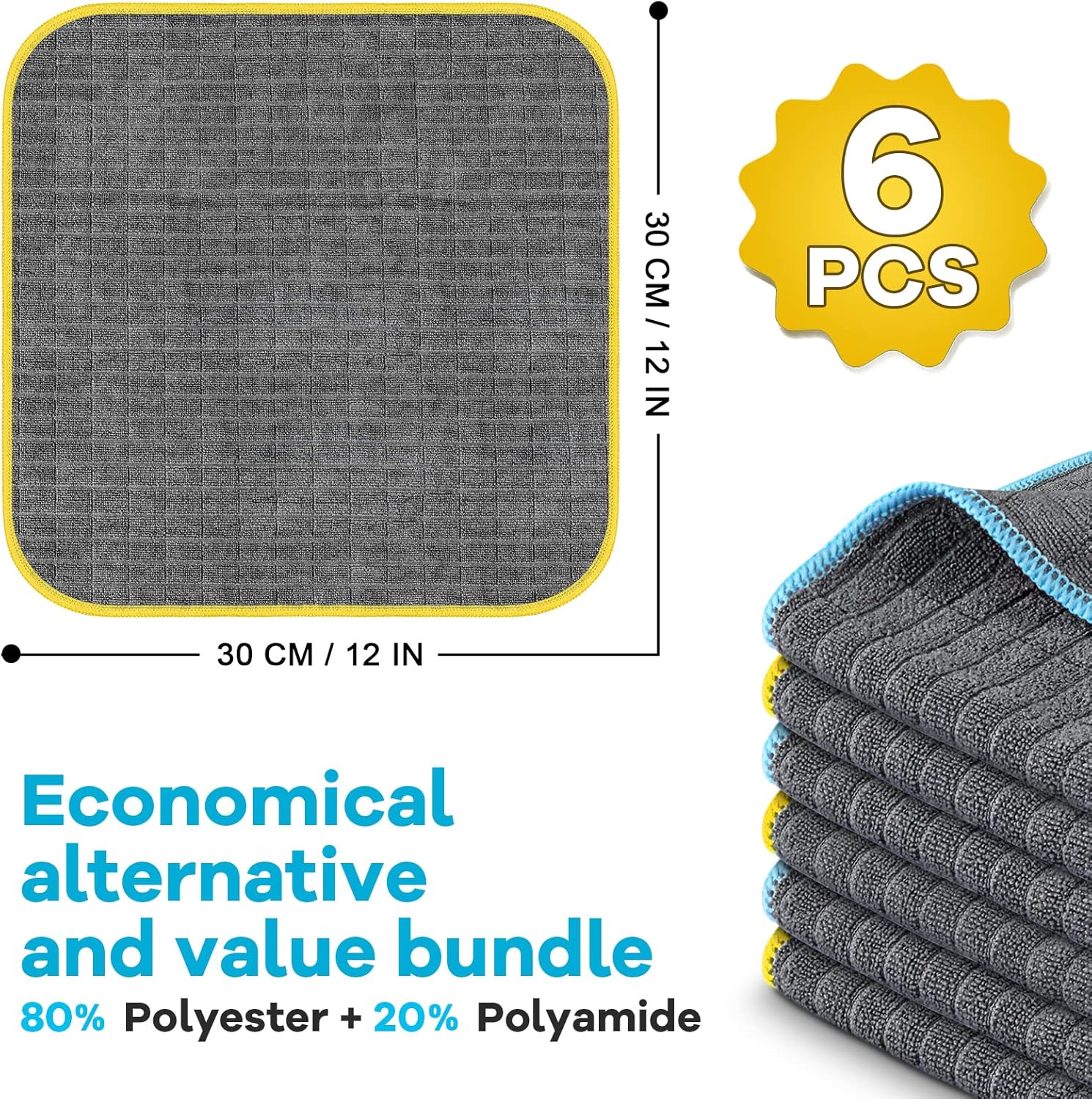 Airlab Microfiber Cleaning Cloth for Household Dust Rags for Cleaning All-Purpose Towels Streak Free Kitchen Dishes Reusable Pack of 6, 12" x 12"