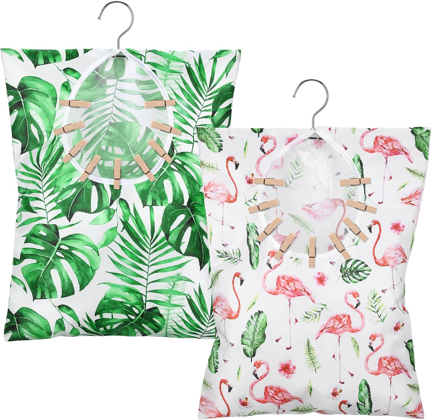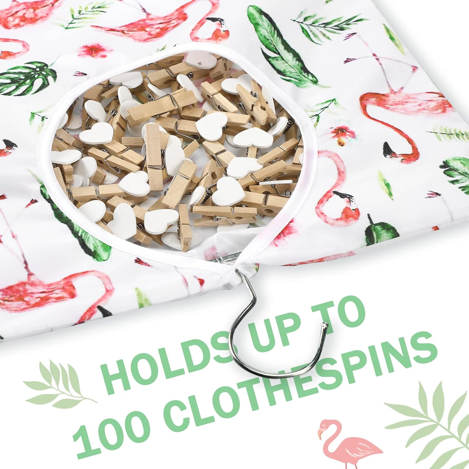 - Summer Theme: package includes 2 pieces of clothespin bags with hanger in different summer designs, one is decorated with flamingo pattern and the other is decorated with palm leaves pattern, full of tropical feeling, can add charm to your home; Proper quantity can satisfy your different daily use and replacement needs