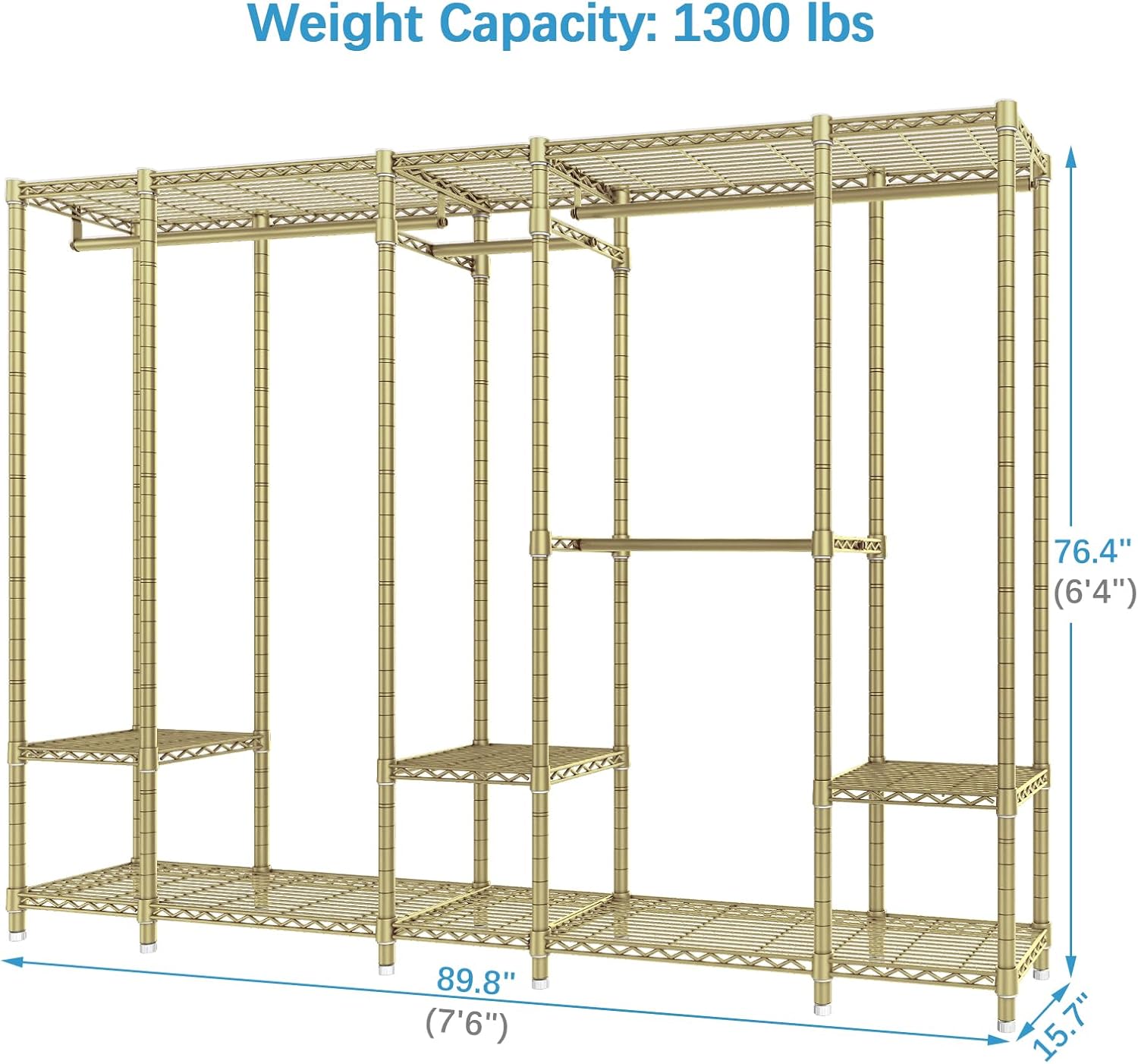VIPEK V50 Extra Large Portable Closet Rack Bedroom Armoire Freestanding Wardrobe Closet, Heavy Duty Clothes Rack Multi-Functional Metal Clothing Rack for Hanging Clothes, Max Load 1300lbs, Gold