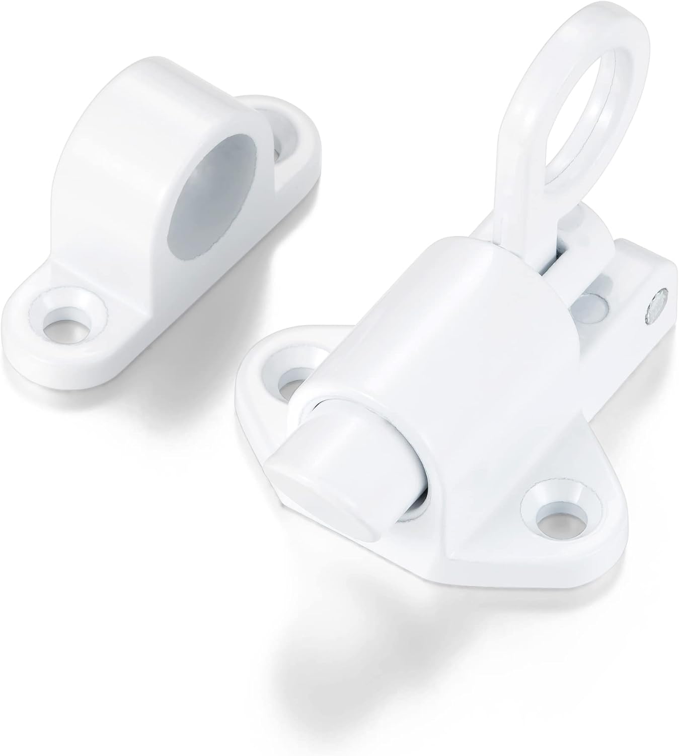 2 Packs Self-Closing Latches,White Spring Door Lock,Resilient Bolt Latch Aluminum Alloy Safety Automatic Spring Barrel Slide Door Lock with Screws,Used for Gate,Window and Cabinet etc