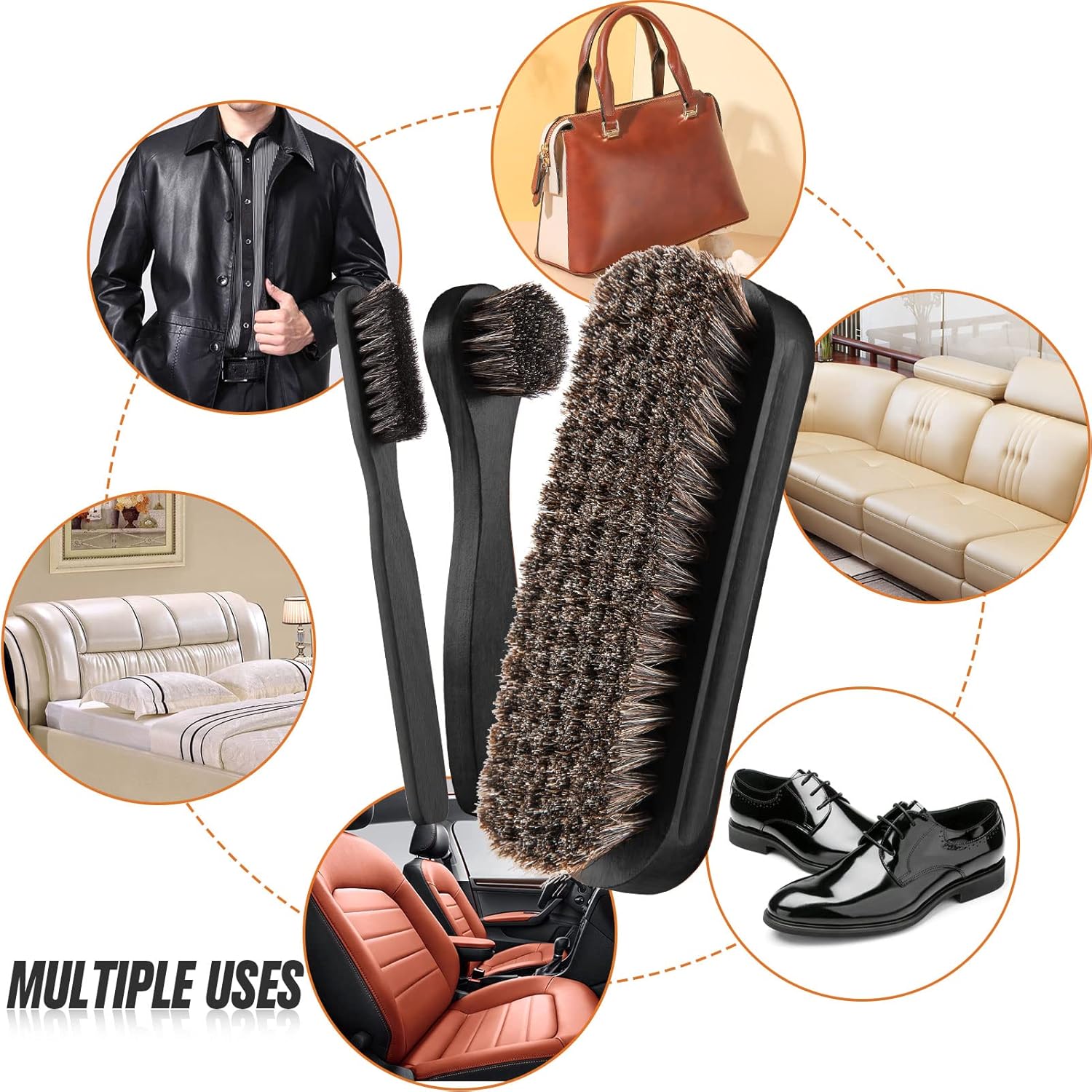 - Mufti-functional shoes brush set - This set contains 1 pieces shoes brushes, 1 piece mini shoe cream brush and 1 piece shoes shine cloth, suitable for shoes, handbags, luggage, boots, gloves, jacket, coat, car auto upholstery