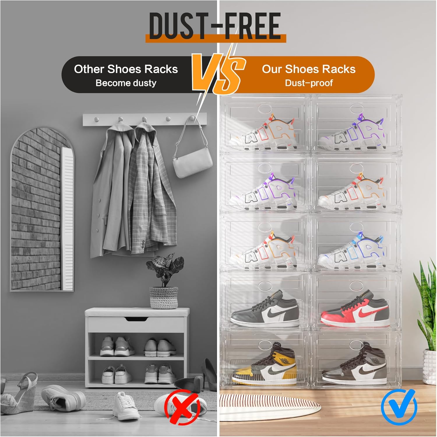 - Magnetic Door: The shoe storage box comes with a magnetic door that securely seals your shoes inside, keeping them safe and protected from dust.