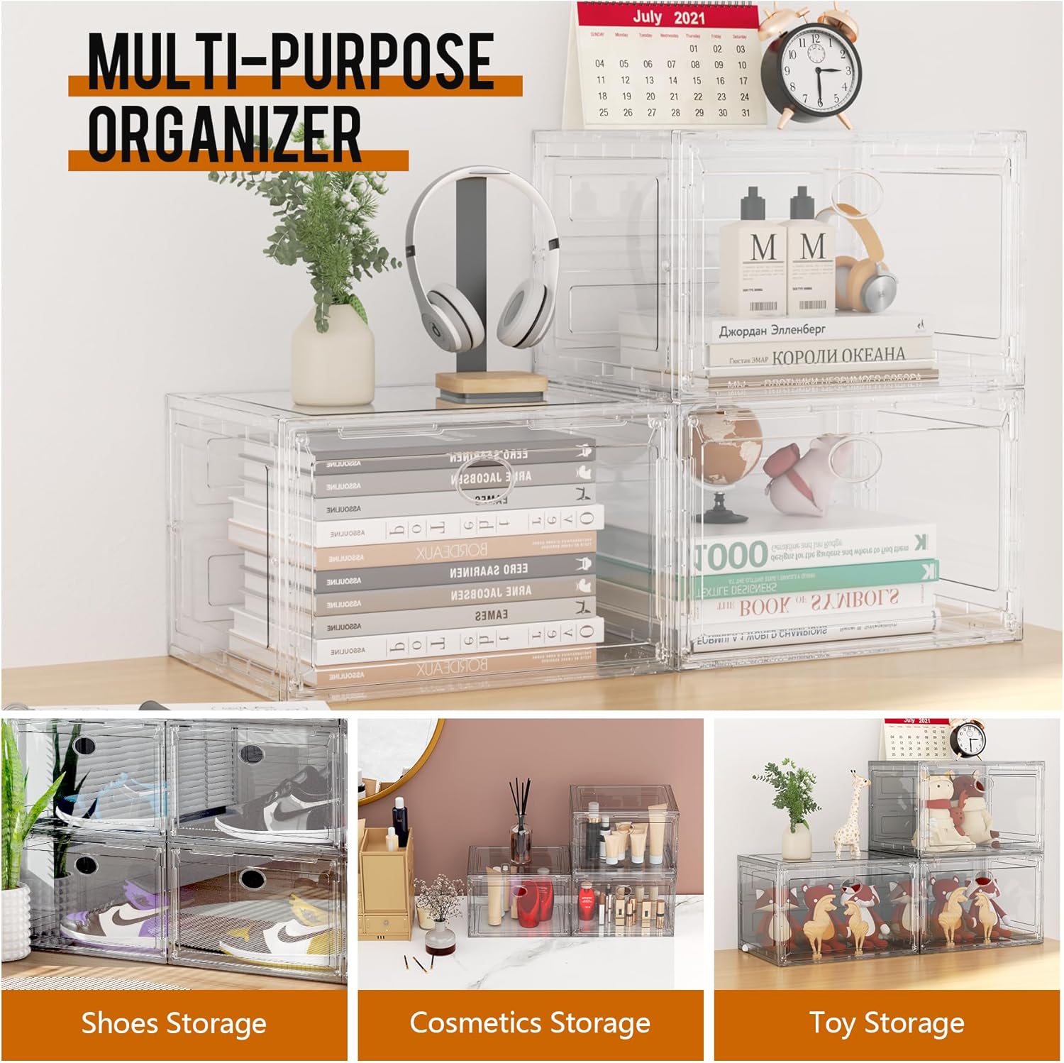 KEFA XL Shoe Storage Box Organizer, 8 Pack Shoe Boxes Clear Plastic Stackable, Sneaker Display Case Container Fit for US 13 (Side 8 PACK CLEAR)