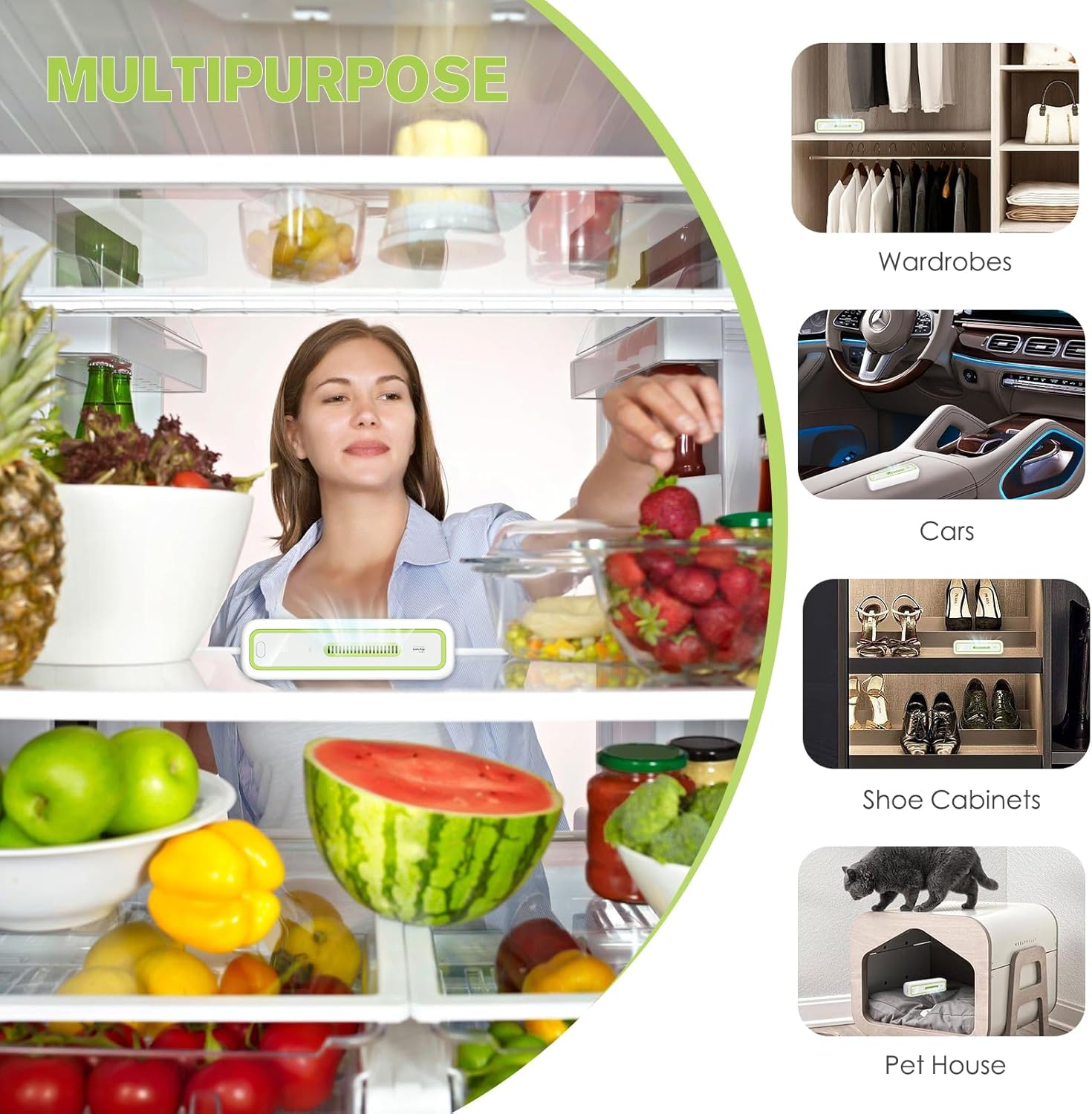 - 🍀【Versatile and Multipurpose】Designed for various environments, our Ozone fridge deodorizer excels at freshening up refrigerators and works equally well in closets, wardrobes, cars, shoe cabinets, pet rooms, and any other small enclosed space. Say goodbye to lingering odors and experience a pleasant and inviting atmosphere wherever you use it.