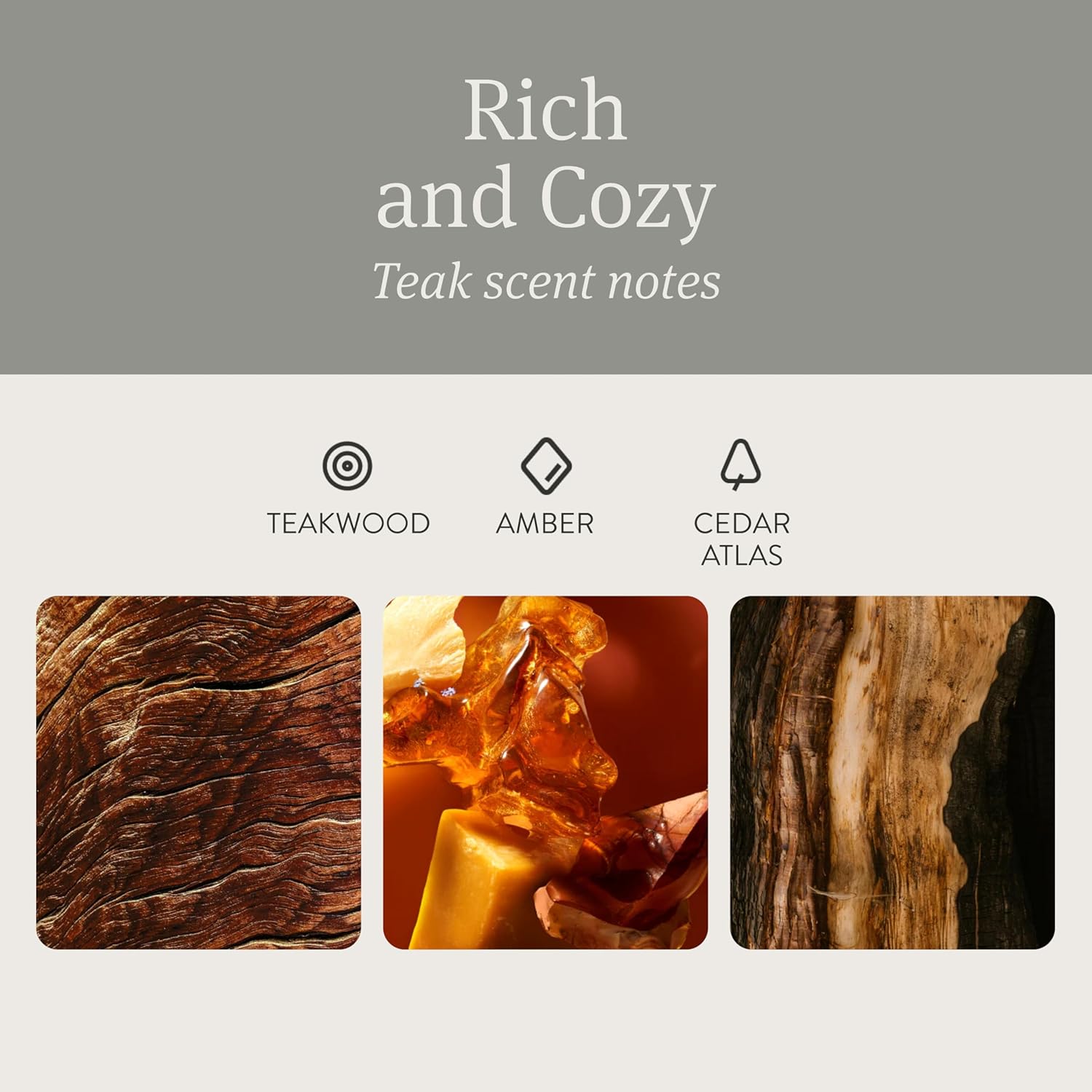 - MADE IN THE USA: Made of an organic stone blend specifically formulated for strong, even scent distribution all month long. Magnetized to fit perfectly on your car visor with our metal clip. Our Teak scent is reminiscent of fresh rain, with notes of Amber, cedar & teakwood