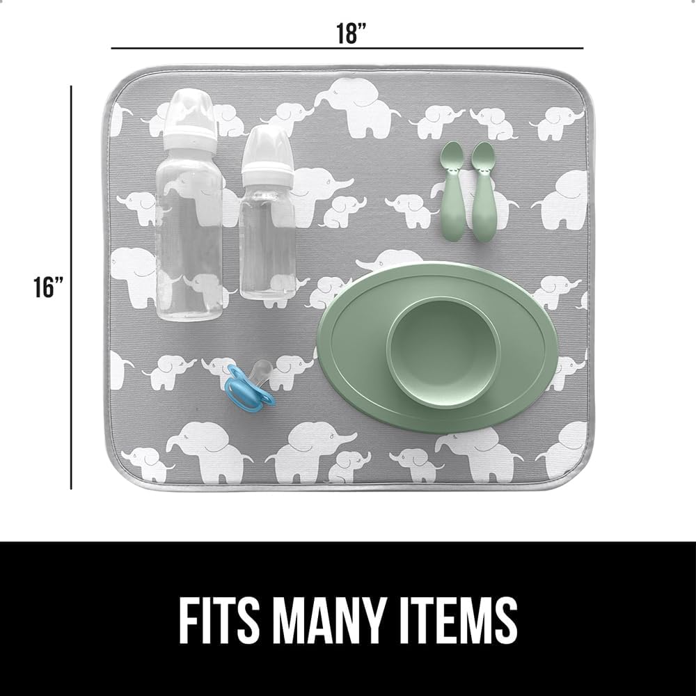 GORILLA GRIP Ultra Water Absorbent Microfiber Dish Drying Mat, Quick Dry Thick Mesh, Slip Resistant Pad for Sink Dishes or Under Rack, Kitchen Counter Accessories, 16x18, Machine Wash Mats, Elephants