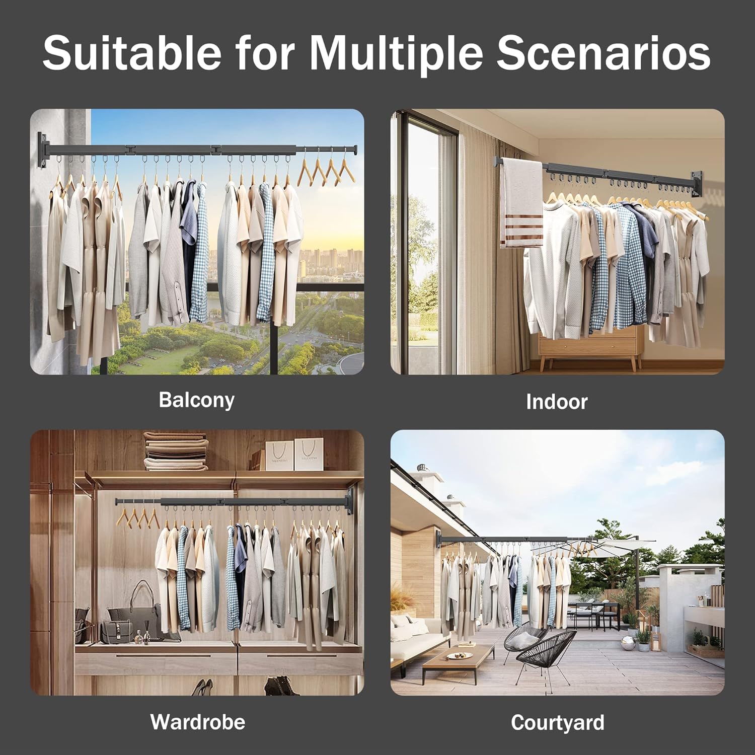 - ((((Clothes Drying Rack with 6 mounting holes))))--_Laundry Drying Rack,Compact Clothes Dryer, Folding Laundry Drying Rack, Wall-Mounted Garment Hanger, Retractable Clothes Rack, Collapsible Hanging Organizer