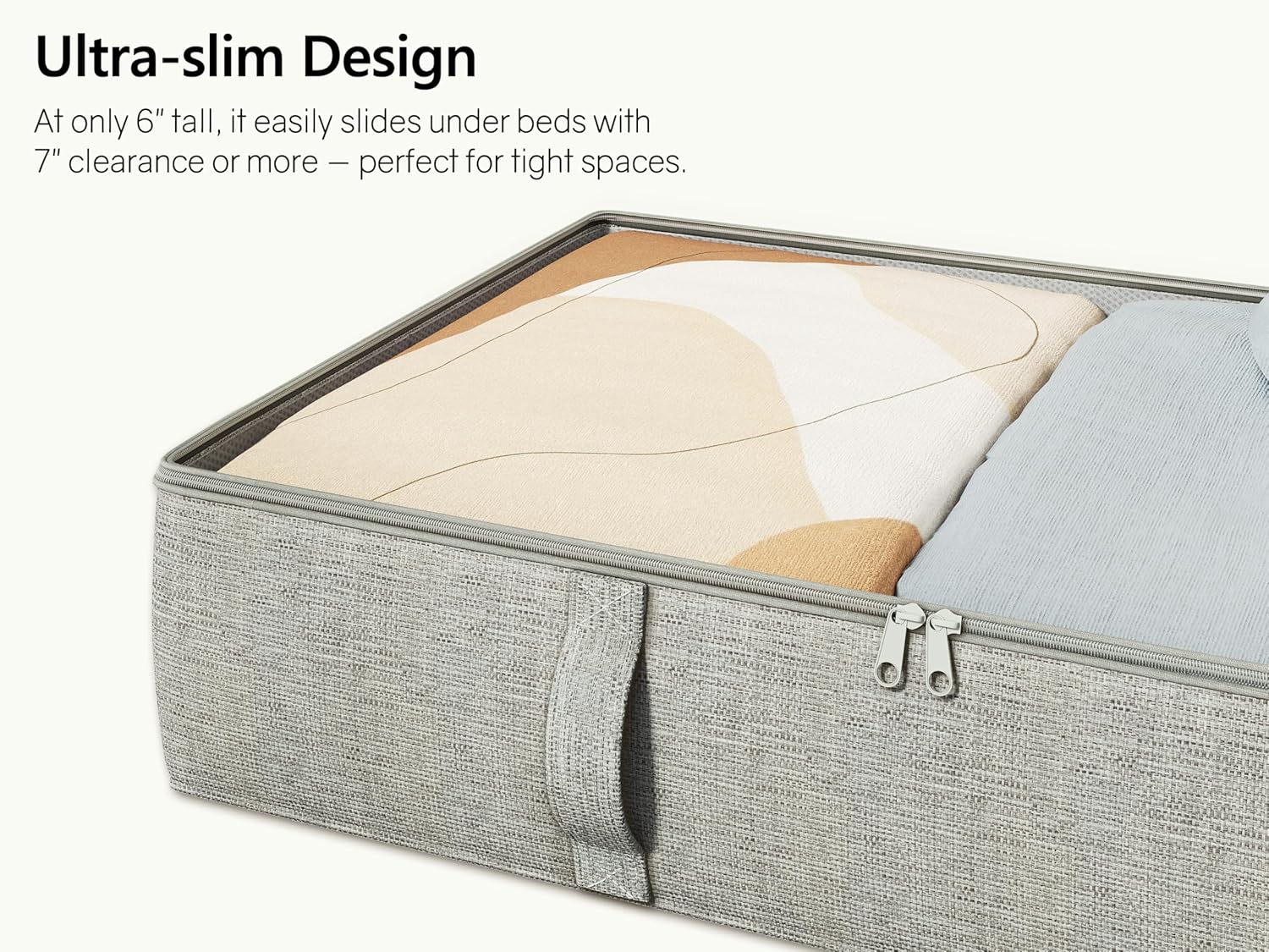 2-Pack Under Bed Storage Containers, 6 Inches Tall Underbed Clothes Storage Organizer Bin with Sturdy Sidewalls/Bottom, Underbed Storage Bins 2 Storage Thin Bins