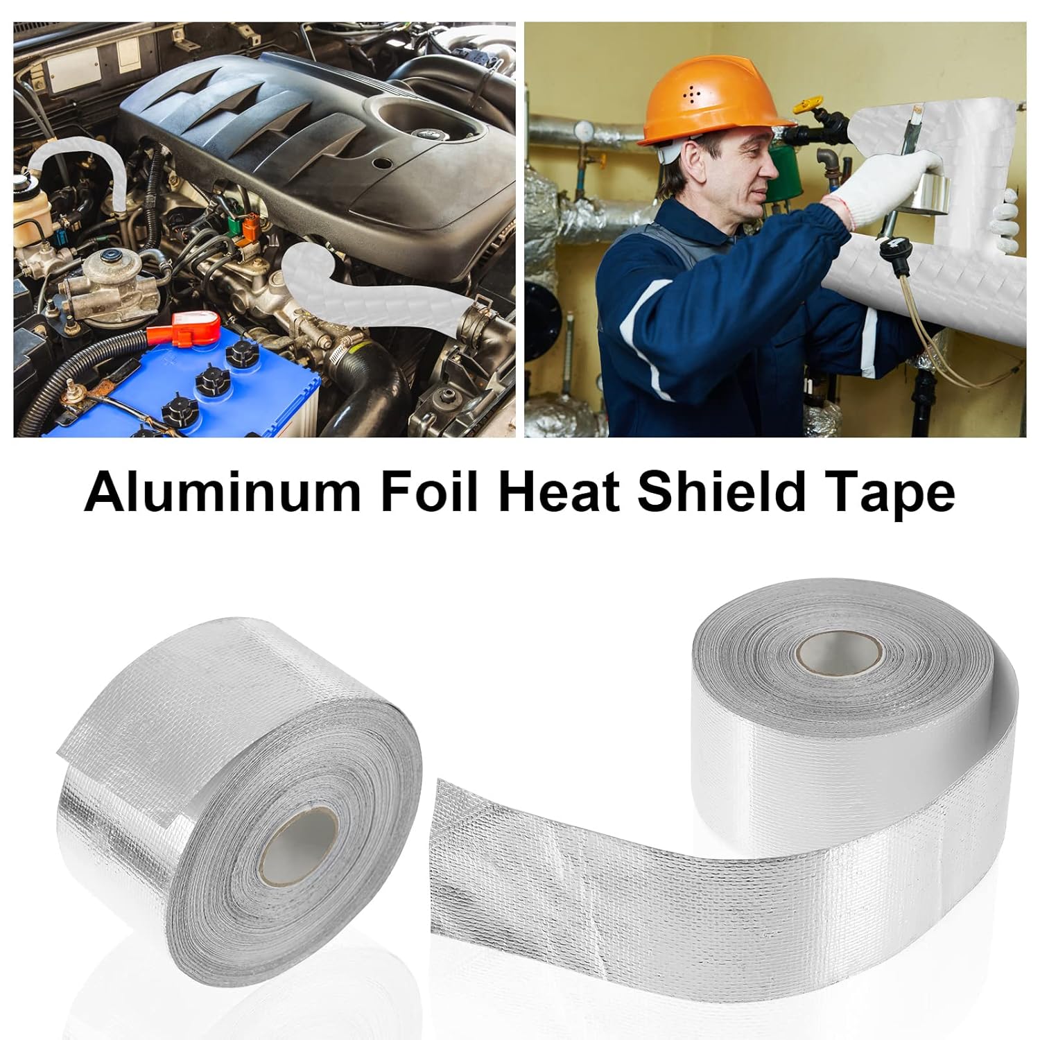 - Quality Material: the adhesive heat shield tape is made of glass fiber fabric with an aluminized outer facing, which is elasticity, wear resistance, heat insulation, high temperature resistant, corrosion resistant and waterproof, and strong adhesion; This foil tape can provide ultimate protection from extreme heat as well as oil spills, dirt, grease and road grime