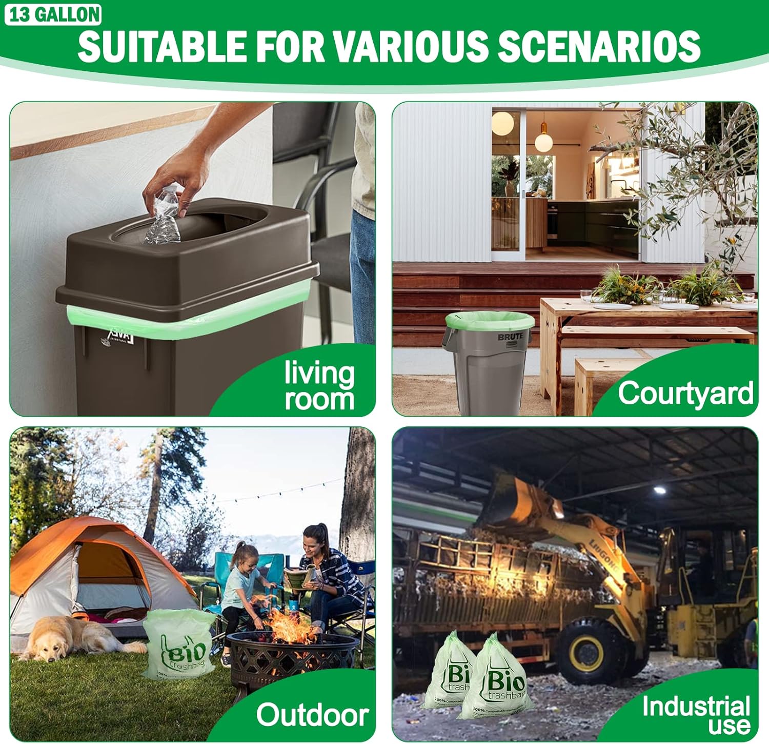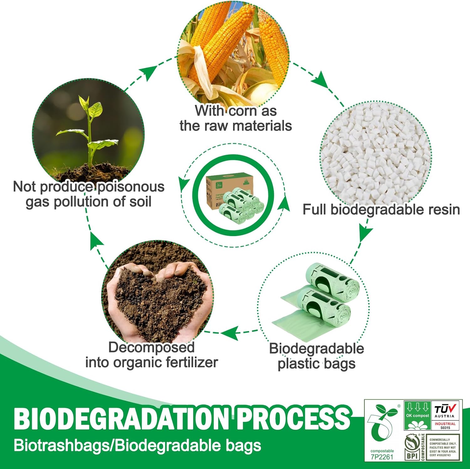 - Biodegradable Trash Bags: These small medium Large garbage bags made from entirely materials such as corn starch and plant-based, our biodegradable garbage bags will degrade to CO2, water and organic biomass after 6-12 months.